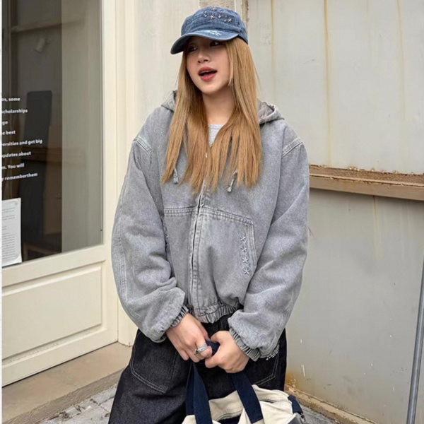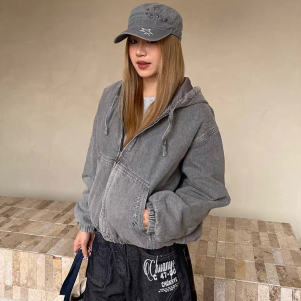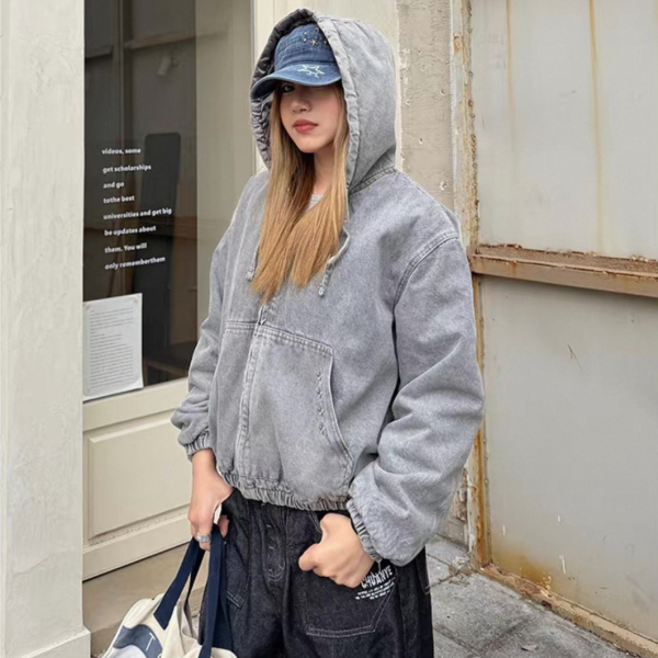 CCYE グレー ウォッシュ加工 ジッパー ジップアップ ファスナー デニムジャケット パーカー フーディー デニムパーカー ブルゾン ワンホンが入荷しました。