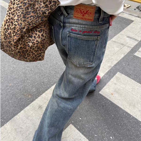 CCYE 2色展開 バックロゴ 刺繍デザイン ビンテージ加工 ウォッシュ加工 古着風 ストレートデニムパンツ ジーンズ ロングデニムパンツ ワンホンが入荷しました。