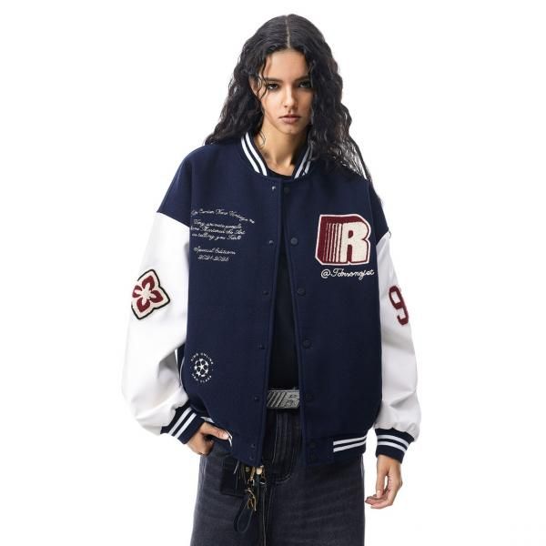 【大特価】 FDR 4色展開 Rロゴ バイカラー ナンバリング スタジャン ベースボールジャケット ブルゾン ボンバージャケット ボンバージャケット ワンホン