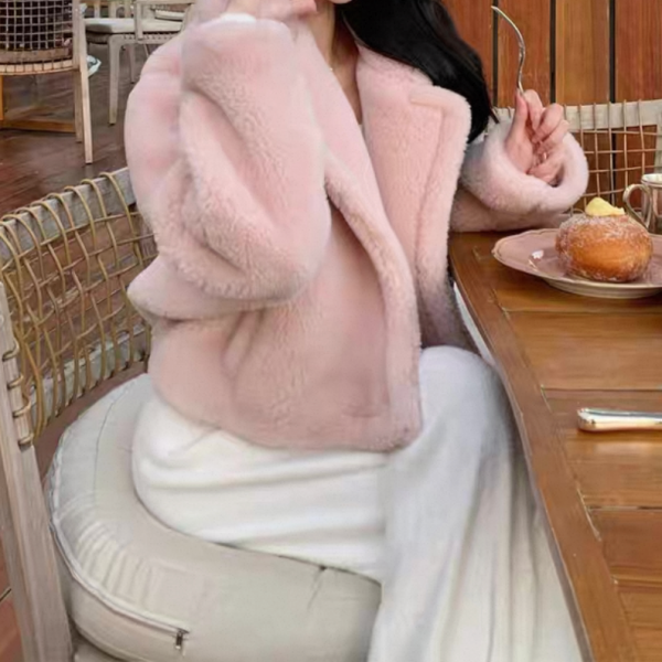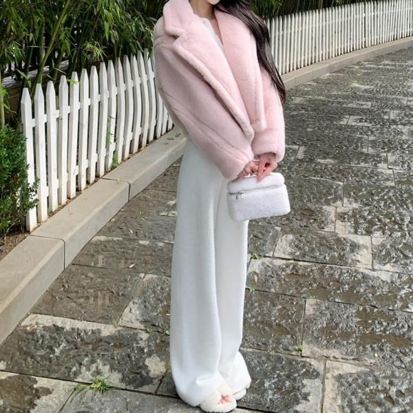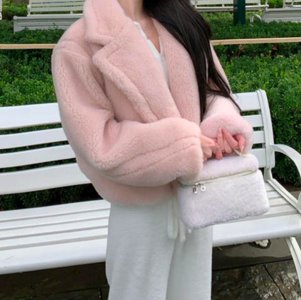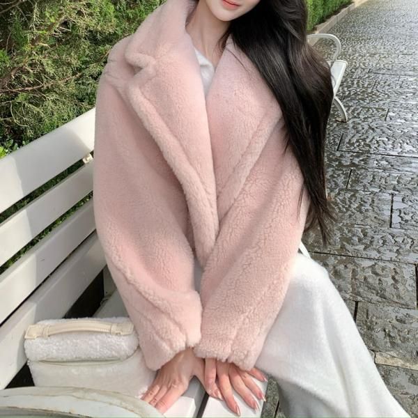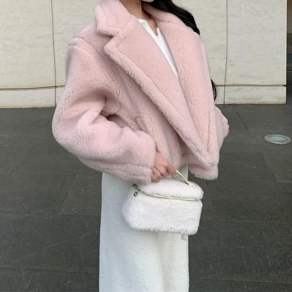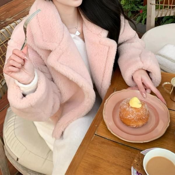 ピンク テディベアジャケット ボアジャケット 襟付き ミドル丈 フェイクファージャケットが入荷しました。