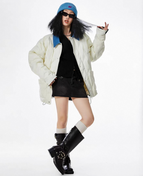 ICH MODE 4色展開 バイカラー ツートーン 襟付き フロントボタン キルティングジャケット ブルゾン ダウンジャケット パファージャケット ワンホンが入荷しました。