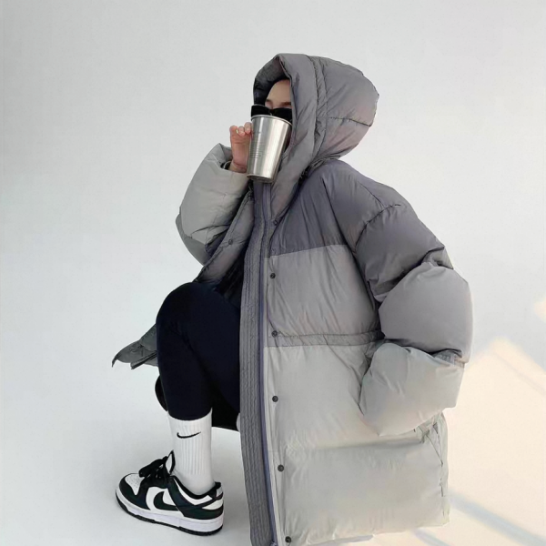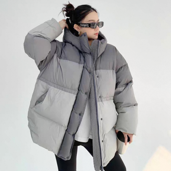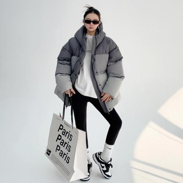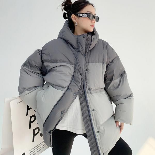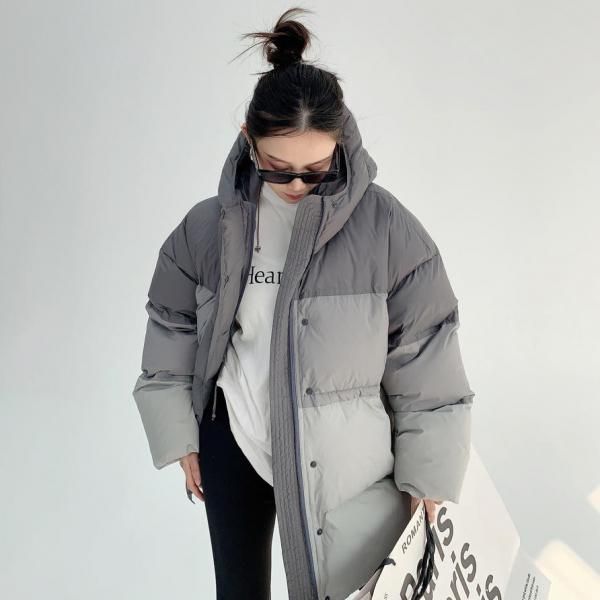 Youlaile studio RICE CAKE OISIS グレー カラーブロック コントラストカラー ダウンジャケット ブルゾン パファージャケット パーカー フーディー ワンホンが入荷しました。