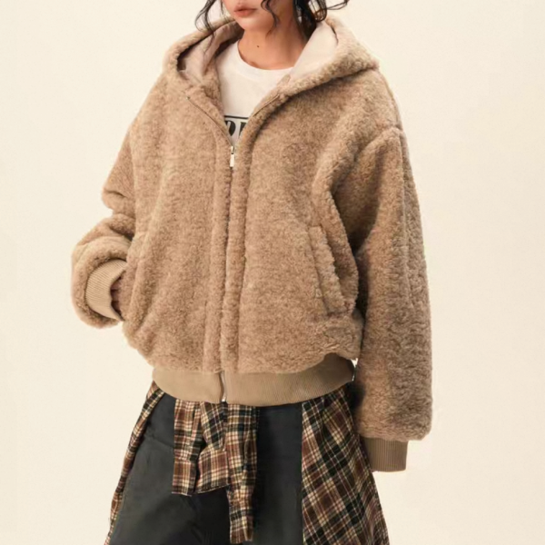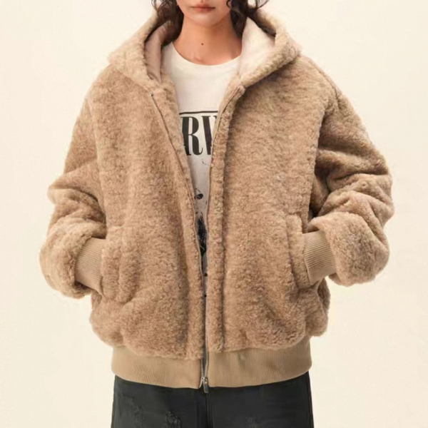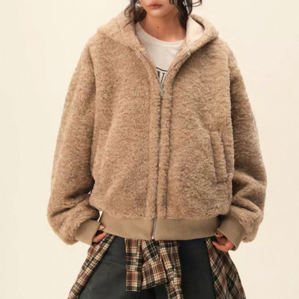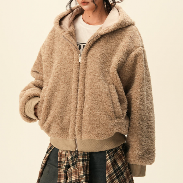BWKA 2色展開 無地 シンプル テディベアパーカー フーディー テディベアジャケット ボアパーカー ジッパー ジップアップ ファスナー ワンホンが入荷しました。