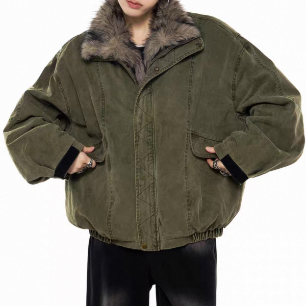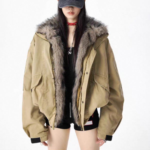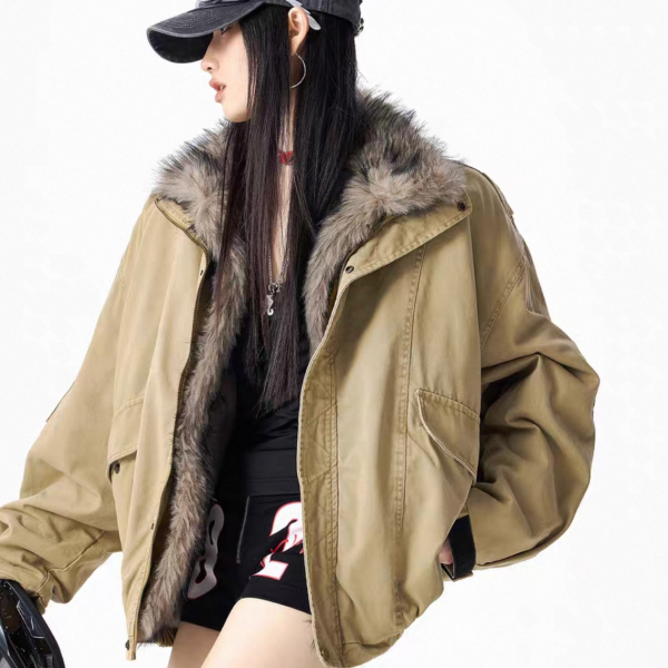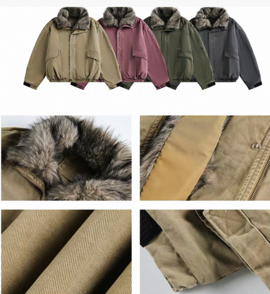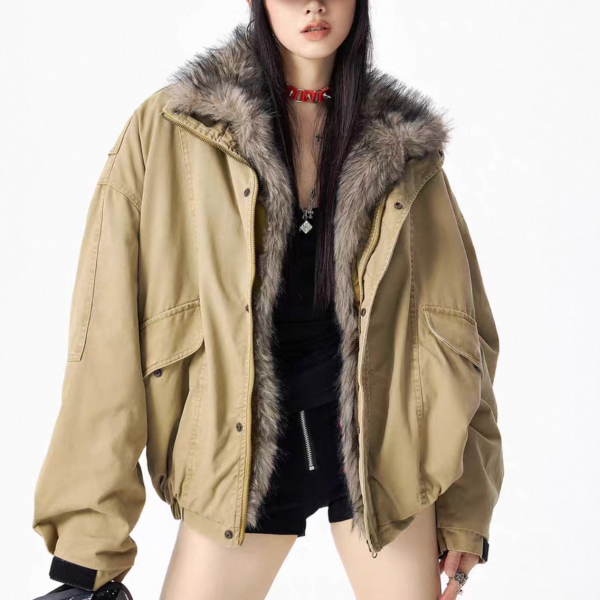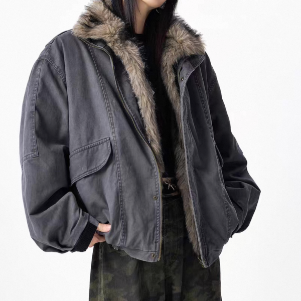 ICHMODE 4色展開 ビンテージ古着風 フェイクファーライナー インナーファー ボア 異素材切替 襟付き ミリタリージャケット ブルゾン ボンバージャケット ワンホンが入荷しました。