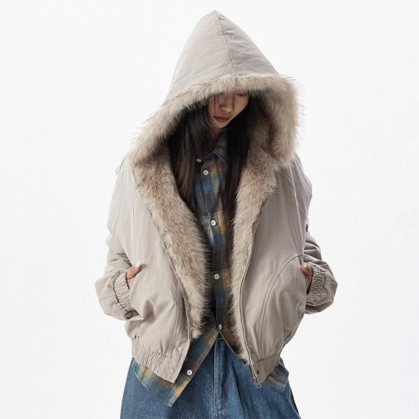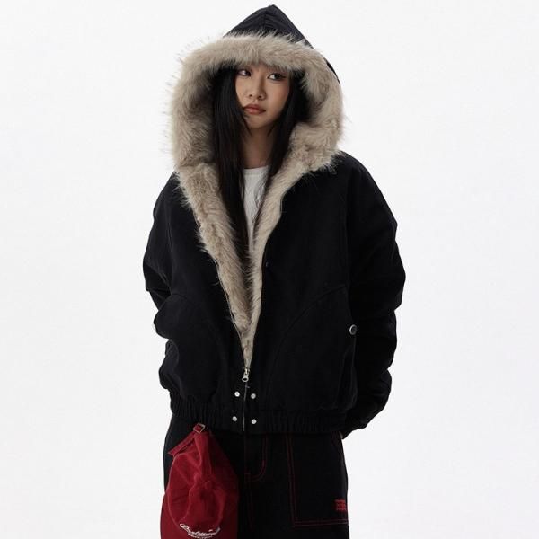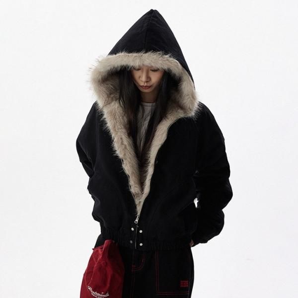 H GANG X 2色展開 ファートリム ファーパーカー フーディー ブルゾン ジッパー ジップアップ ファスナー ボンバージャケット ワンホンが入荷しました。