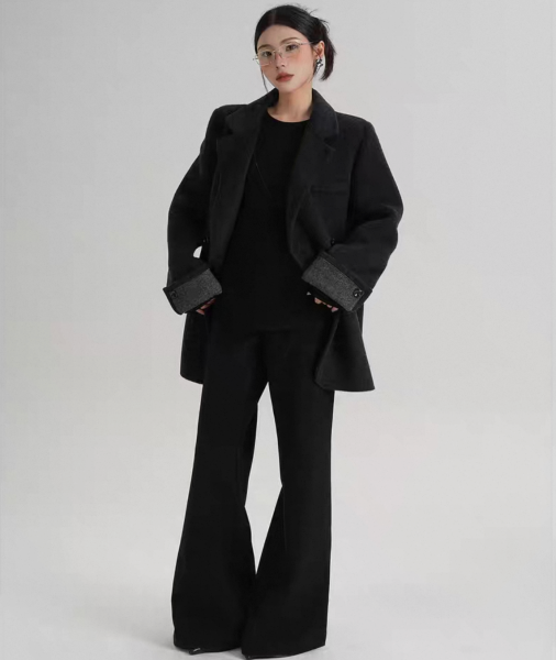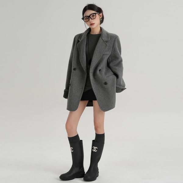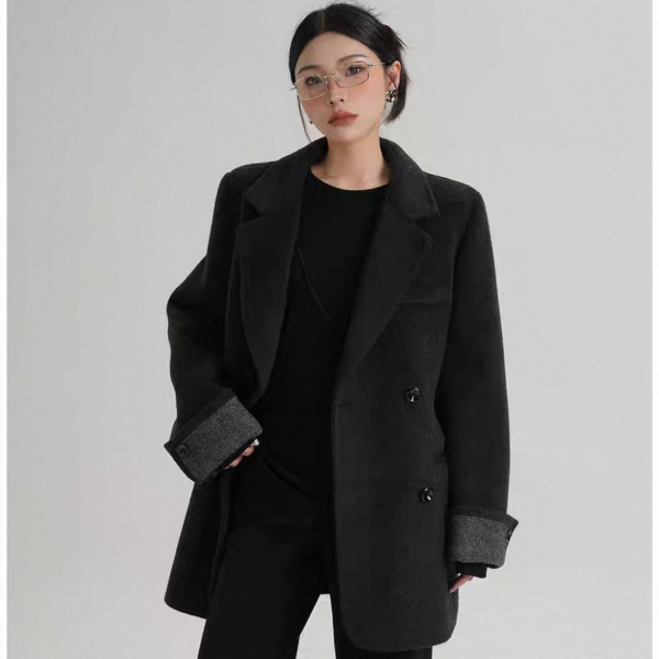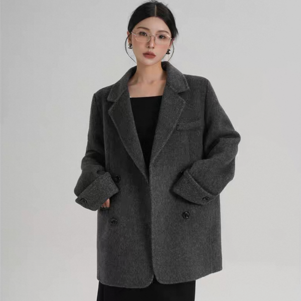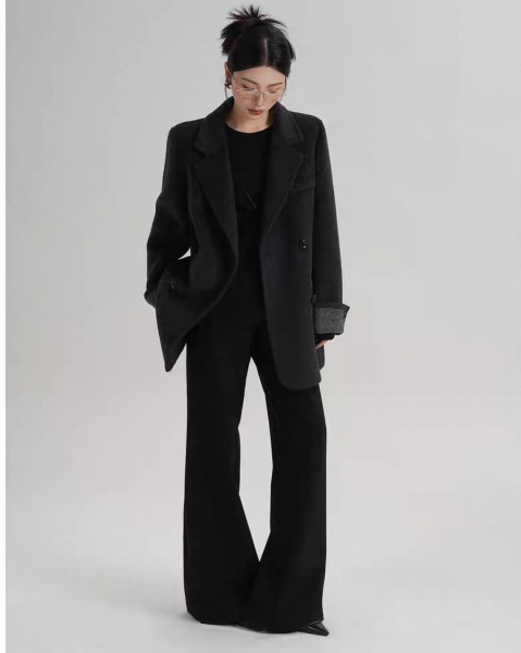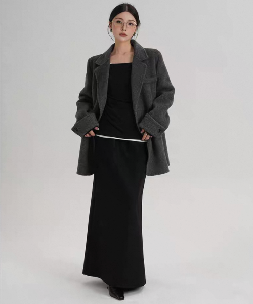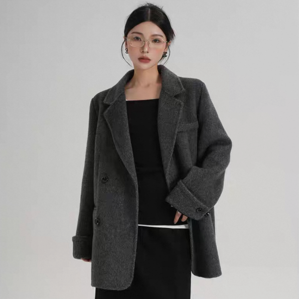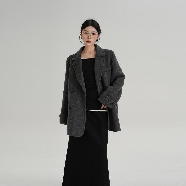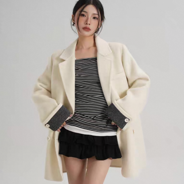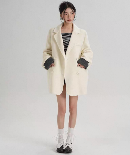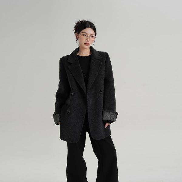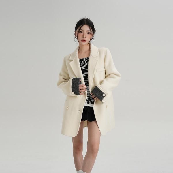 SRYS 3色展開 バイカラー ロールアップスリーブ ミドル丈 ウール調 ショートコート ダブルボタン ダブルブレスト オーバーサイズ ジャケット ワンホンが入荷しました。