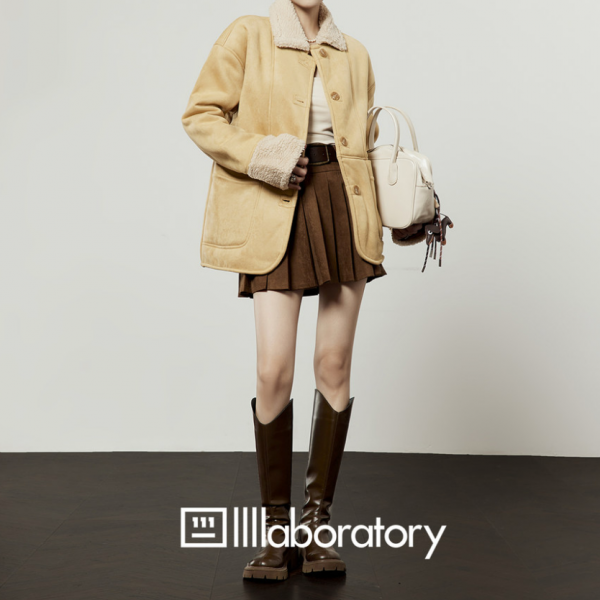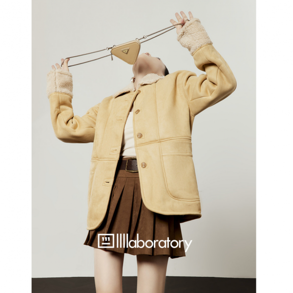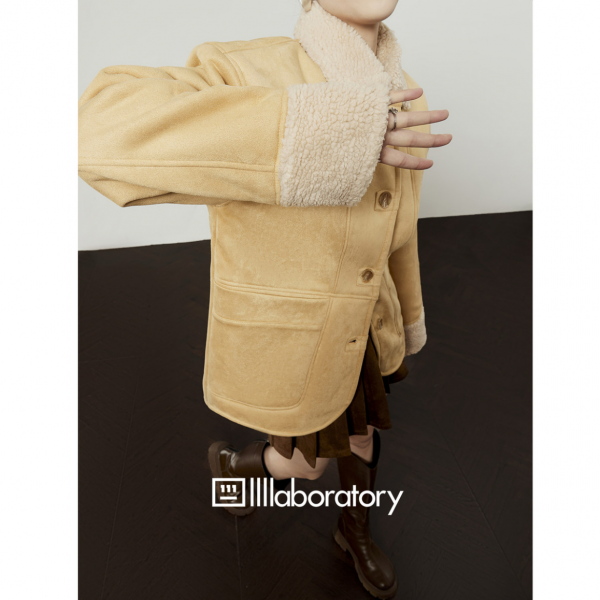 LLL LAB マスタードイエロー ボアカラー ボア襟 スエードジャケット シングルボタン フェイクムートンジャケット ワンホン が入荷しました。