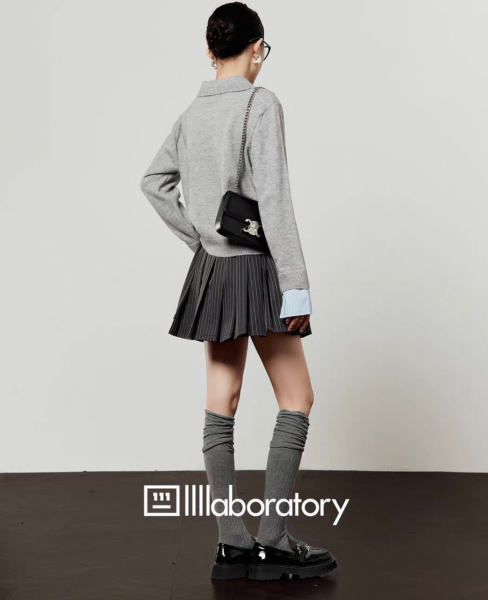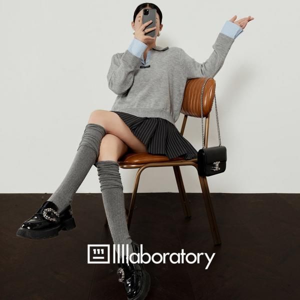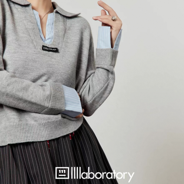 LLL LAB グレーxブルー レイヤード 重ね着風 襟付き シャツ ブラウス トップス カットソー 長袖 Vネック ニット セーター トップス カットソー ワンホンが入荷しました。