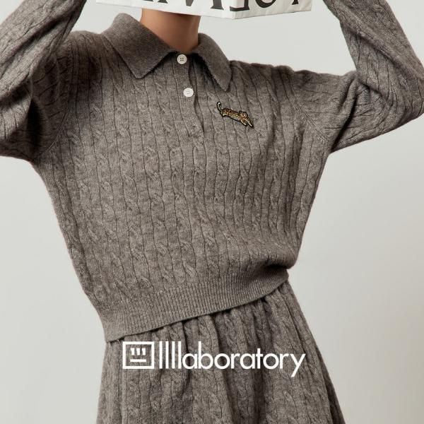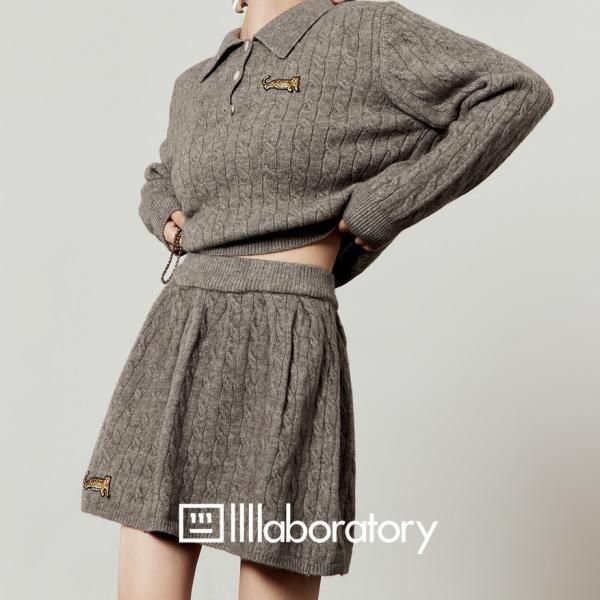 LLL LAB グレー ケーブル編み 長袖 襟付き ニット セーター ニットポロシャツ 長袖 トップス ミニスカート ニットスカート セットアップ ニットアップ ワンホンが入荷しました。