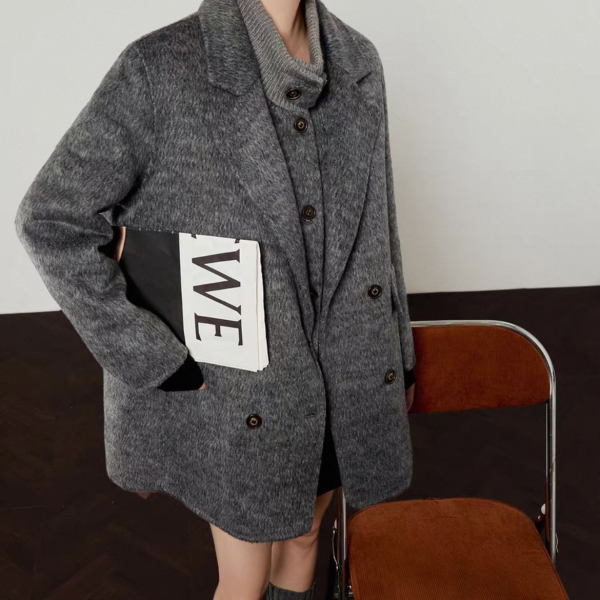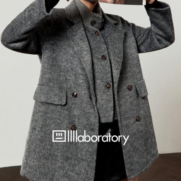LLL LAB グレー ウール調 起毛素材 オーバーサイズ テーラードジャケット フェイクファージャケット ロング丈 ジャケット ダブルボタン ダブルブレスト ワンホンが入荷しました。