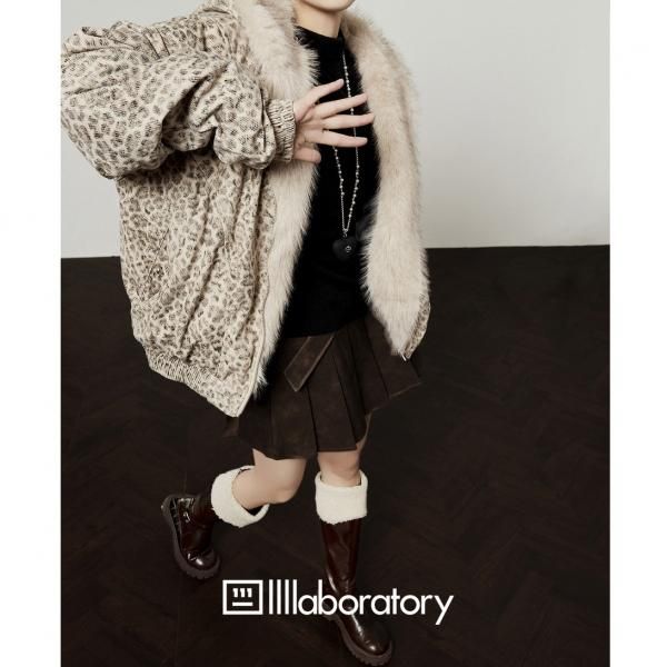 LLL LAB ベージュ レオパード柄 ひょう柄 フェイクファートリム ジッパー ジップアップ ファスナー パーカー フーディー ブルゾン ボンバージャケット ダウンジャケット ワンホンが入荷しました。