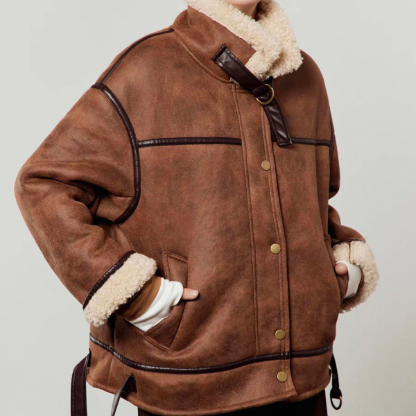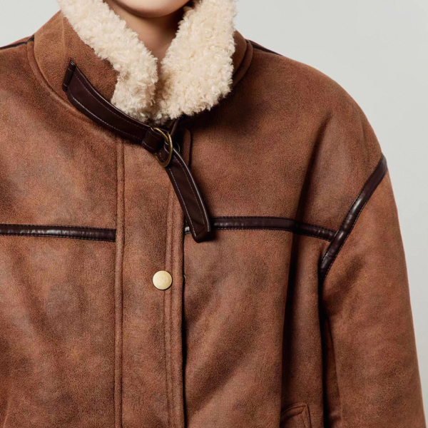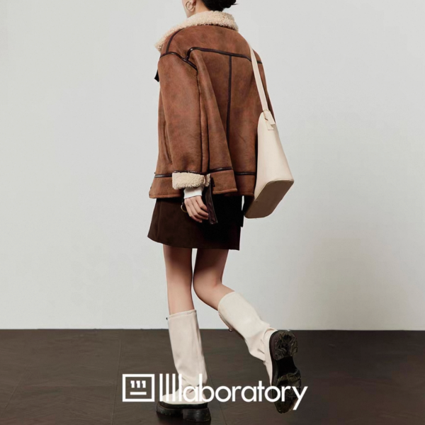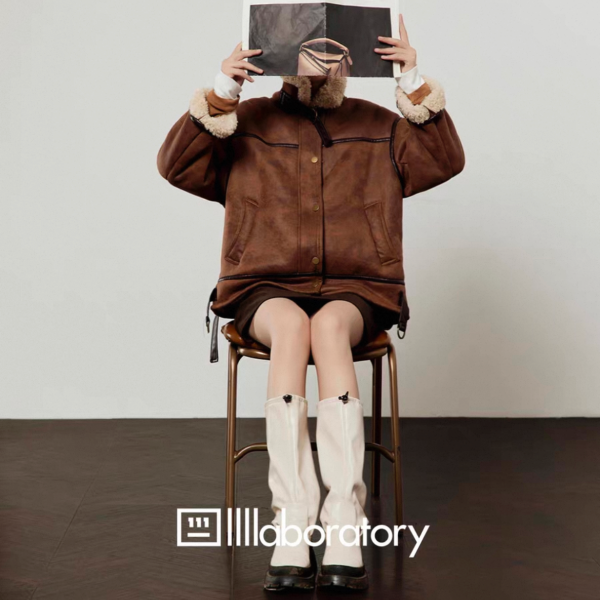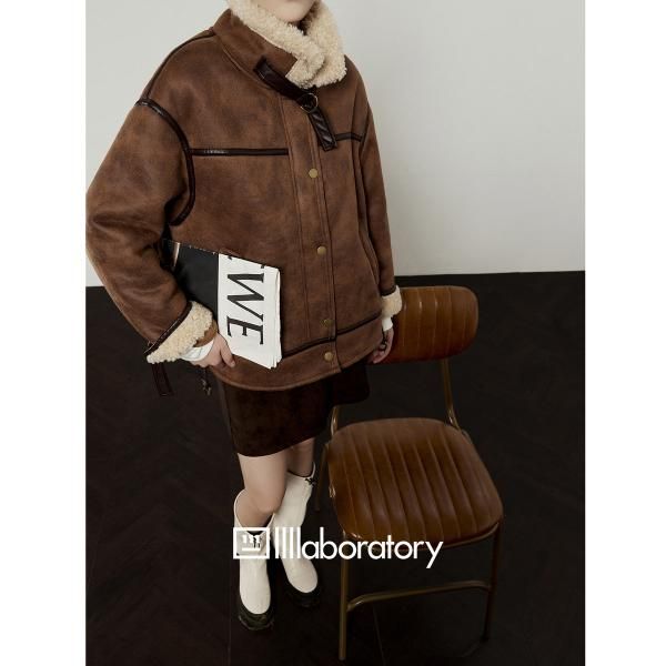 LLL LAB ブラウン フェイクムートンジャケット ボア スタンドカラー ムスタンジャケット が入荷しました。