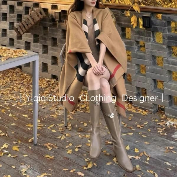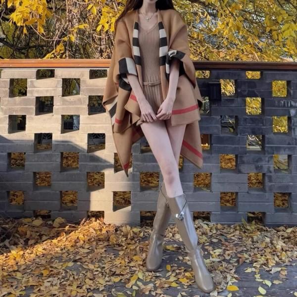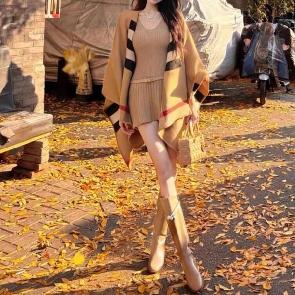 ベージュ ヘイマーケットチェック柄 ケープ風 ショール ポンチョ ガウン ストール 大判ストール が入荷しました。