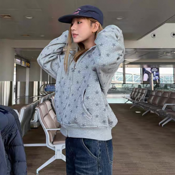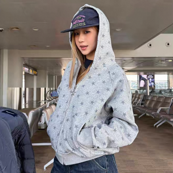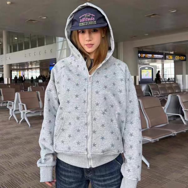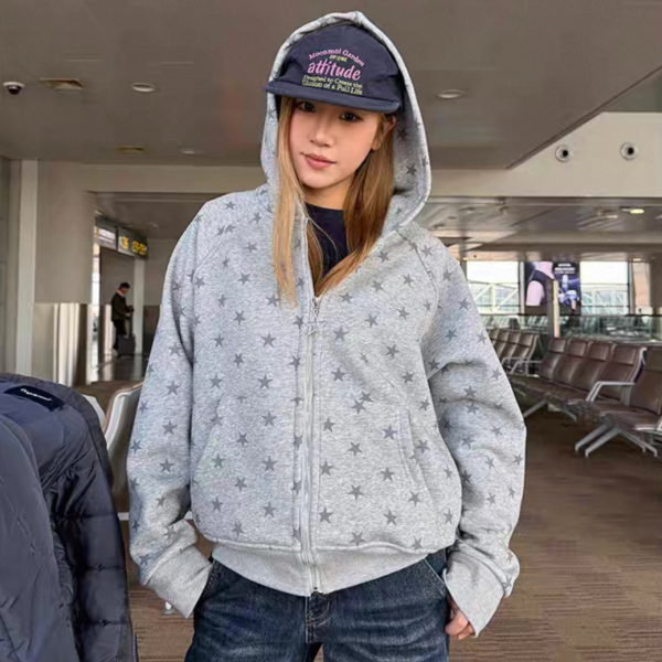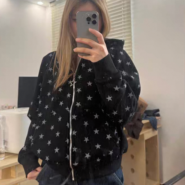 【大特価】CCYE 2色展開 スター 星 ジッパー ジップアップ ファスナー スウェット パーカー フーディージャケット ワンホン