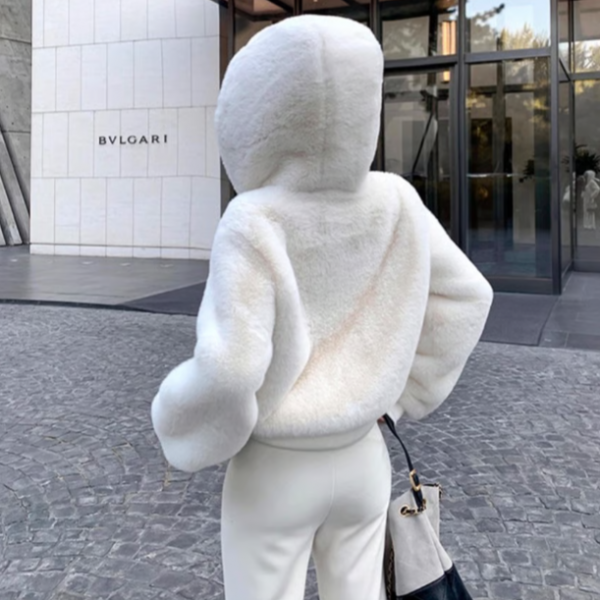 ホワイト 高品質 フェイクファージャケット ファーパーカー フーディー ジッパー ジップアップ ファスナーが入荷しました。