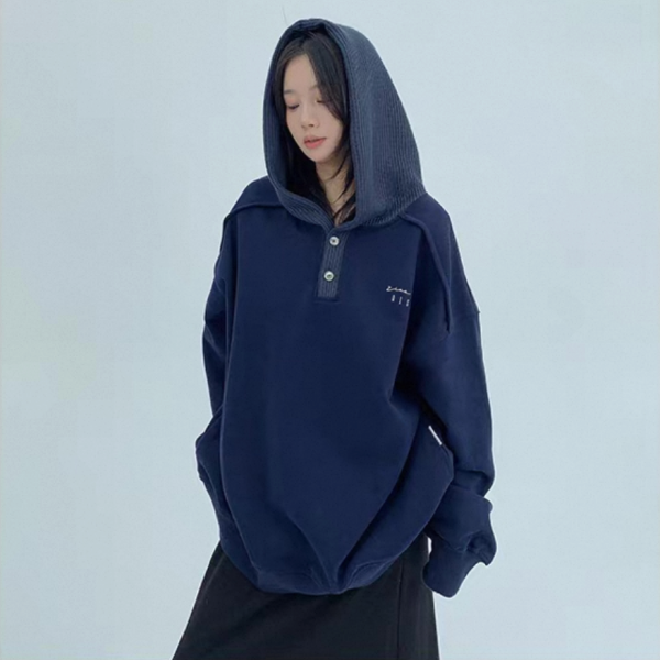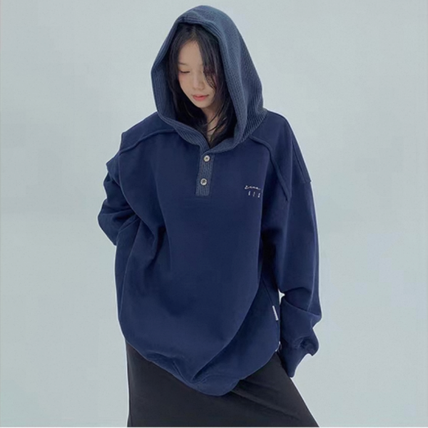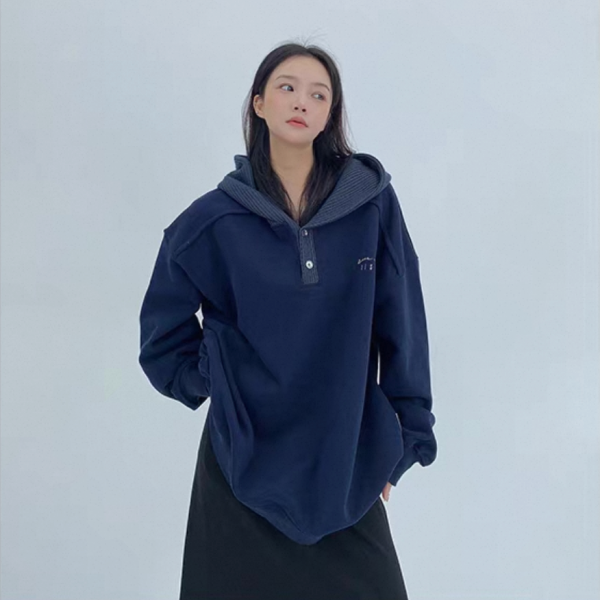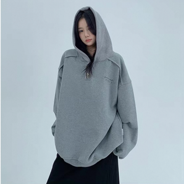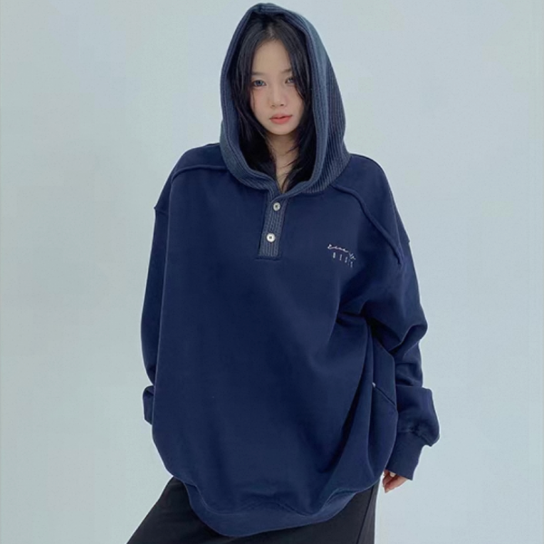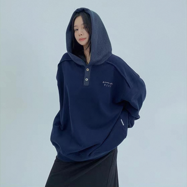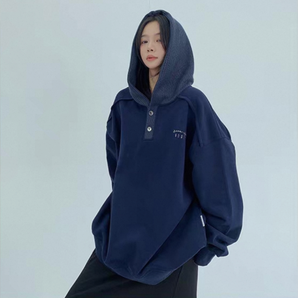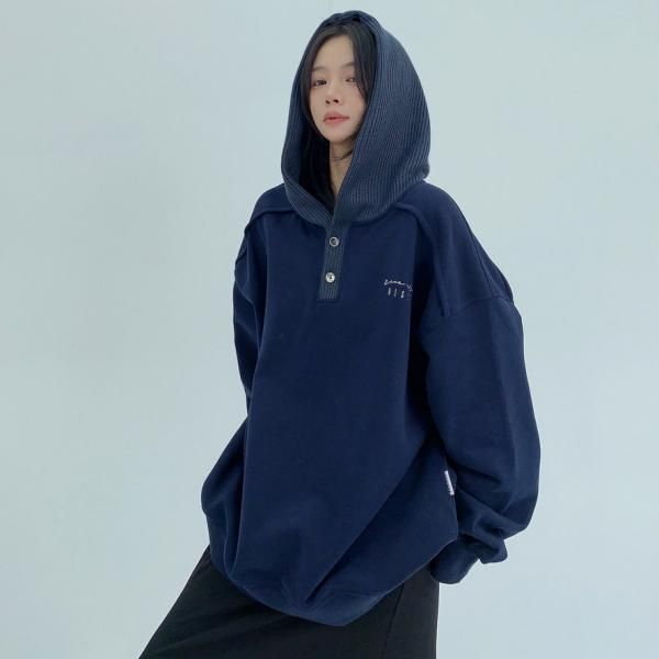 Youlaile studio RICE CAKE OISIS 2色展開 フロントボタン 異素材切替 ニット切替 スウェット トレーナー プルオーバー パーカー フーディー トップス ワンホンが入荷しました。
