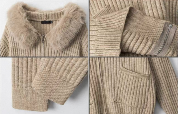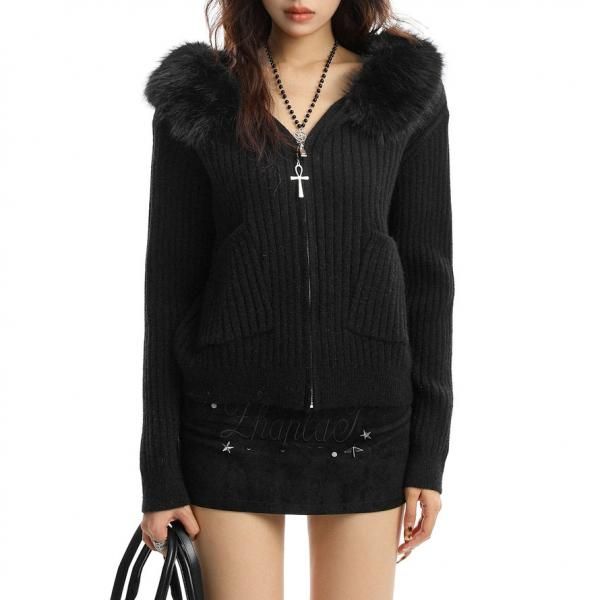 BIGGOLD STUDIO 2色展開 無地 シンプル リブデザイン ジッパー ジップアップ ファスナー フェイクファー襟 ファーカラー ファートリム ニットジャケット セーター トップス ワンホンが入荷しました。