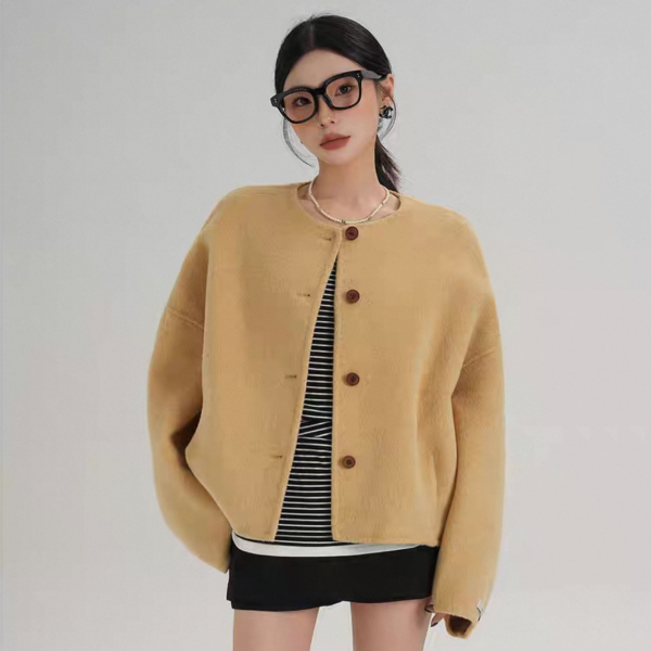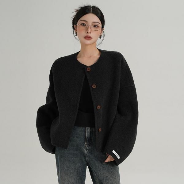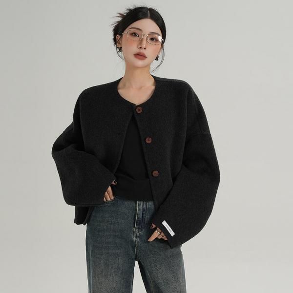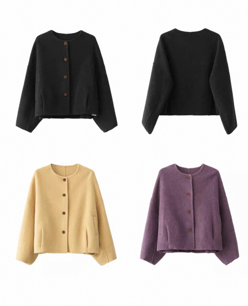 SRYS 3色展開 フロントボタン ウール混ジャケット ノーカラージャケット ショートジャケット ワンホンが入荷しました。