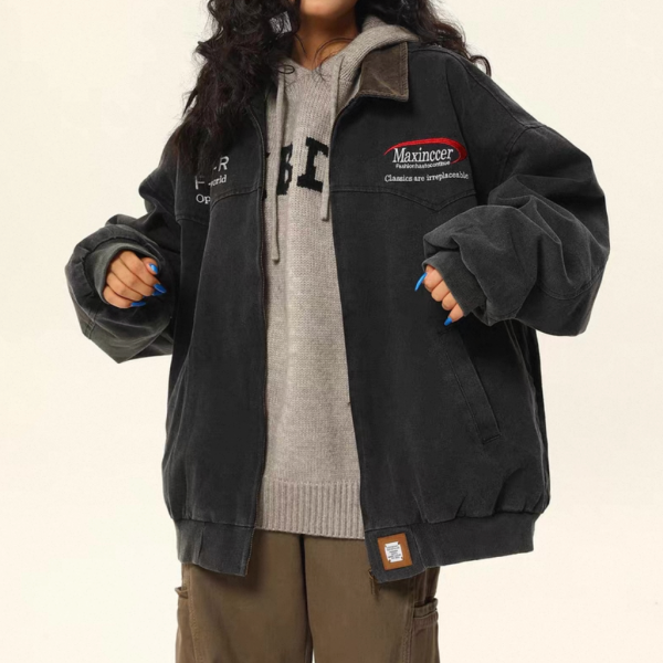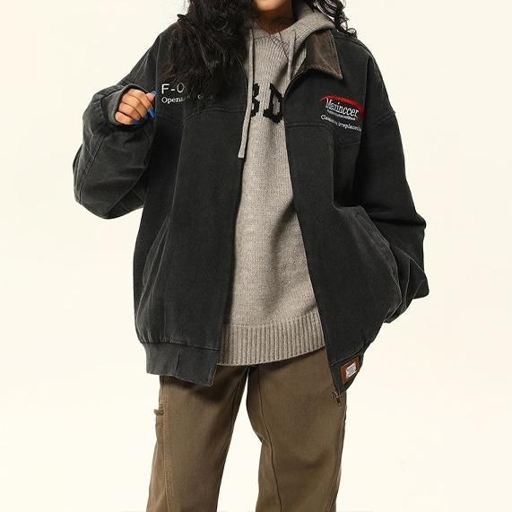 WILDAZI 2色展開 ビンテージ古着風 オーバーサイズ 襟付き ブルゾン ロゴデザイン ジャケット ワークジャケット トラッカージャケット ワンホンが入荷しました。