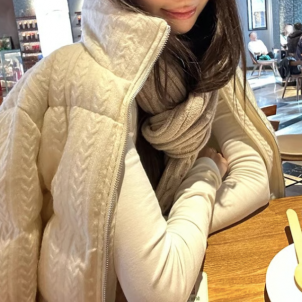 3色展開 ケーブル編み ジッパー ジップアップ ファスナー スタンドカラー ダウンジャケット パファージャケット ブルゾンが入荷しました。