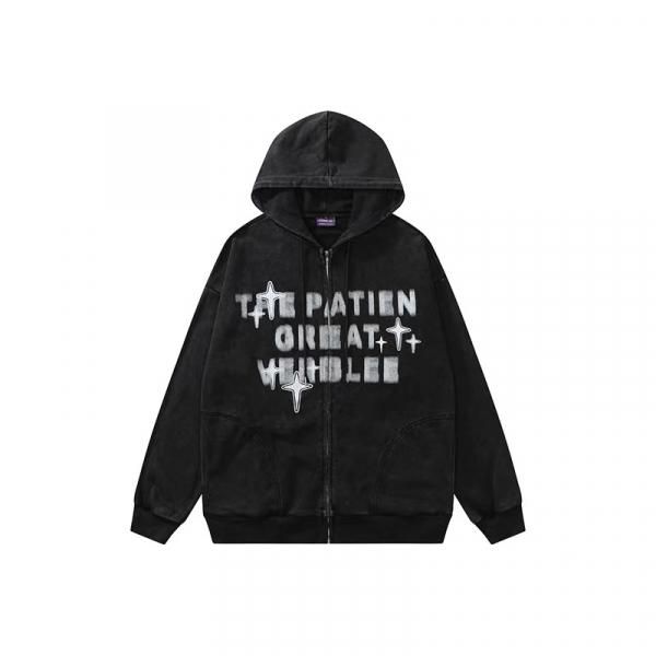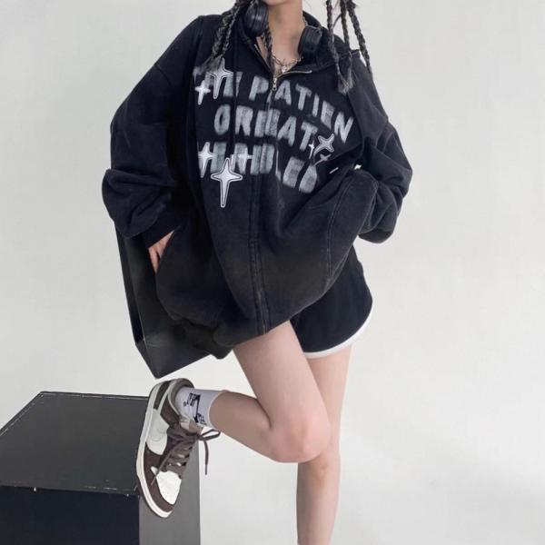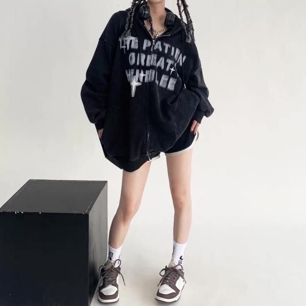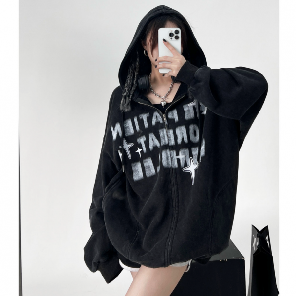 Youlaile studio RICE CAKE OISIS ブラック フロントロゴ ジッパー ジップアップ ファスナー スウェット パーカー フーディー ジャケット ワンホンが入荷しました。