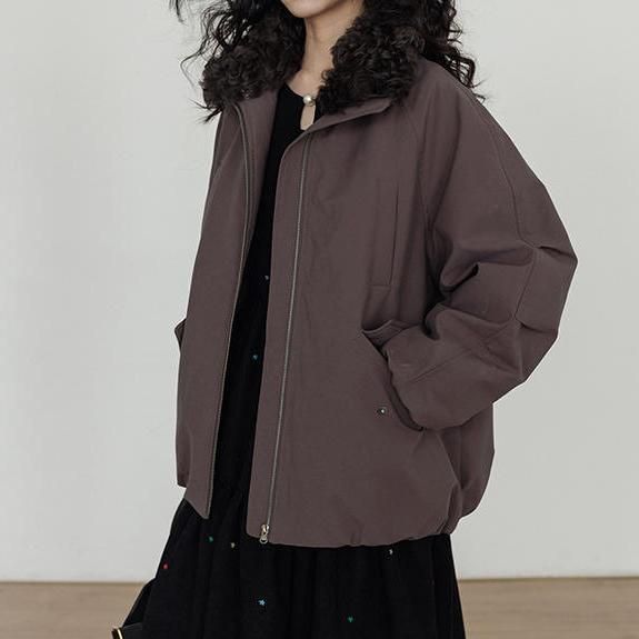 vastand ブラウン 2way ボアカラー フェイクファーカラー スタンドカラー ジッパー ジップアップ ファスナー ブルゾン ボンバージャケット ワンホンが入荷しました。