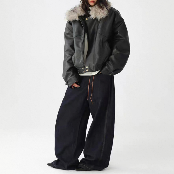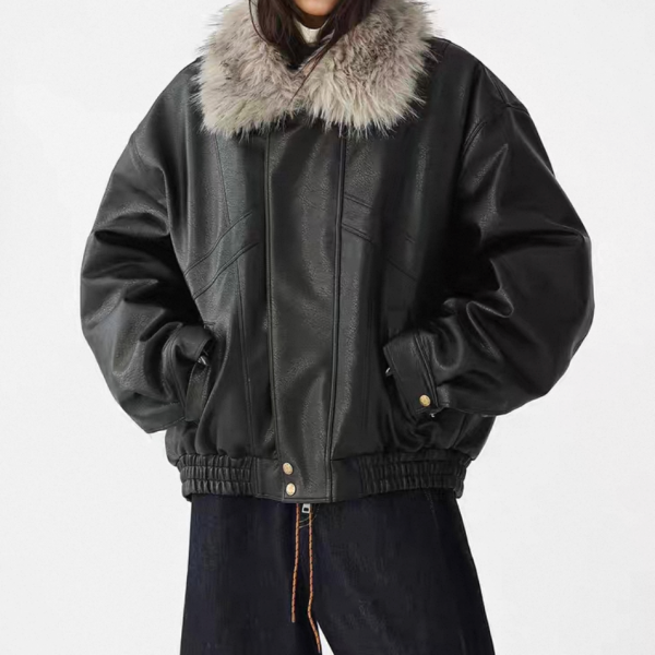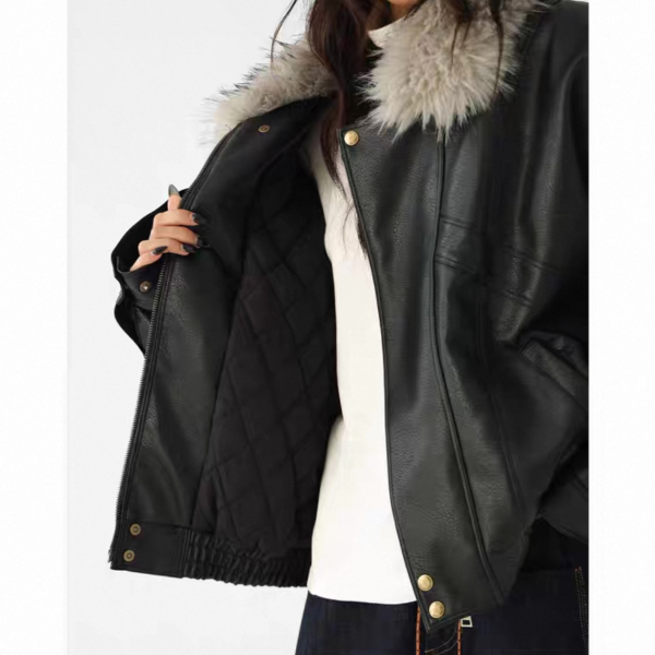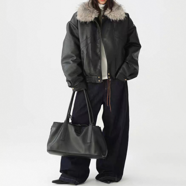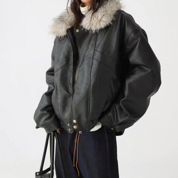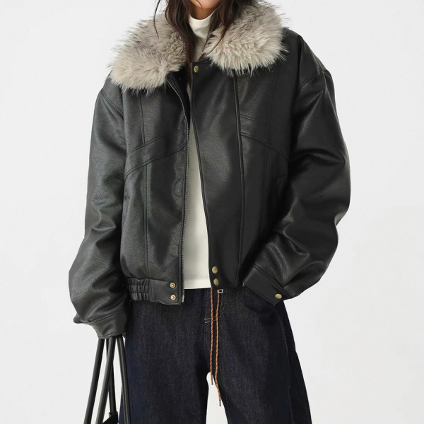 AceStudios ブラックxグレー フェイクファーカラー ファー襟 ジッパー ジップアップ ファスナー レザーブルゾン レザージャケット ワンホンが入荷しました。