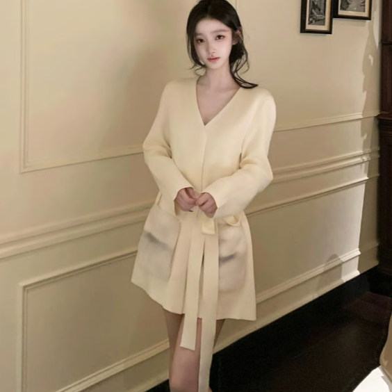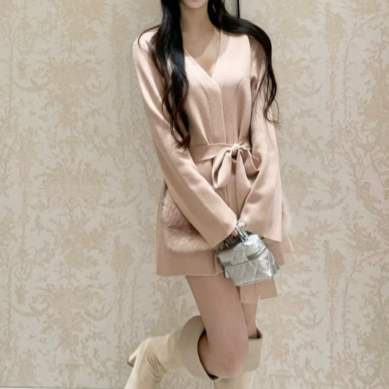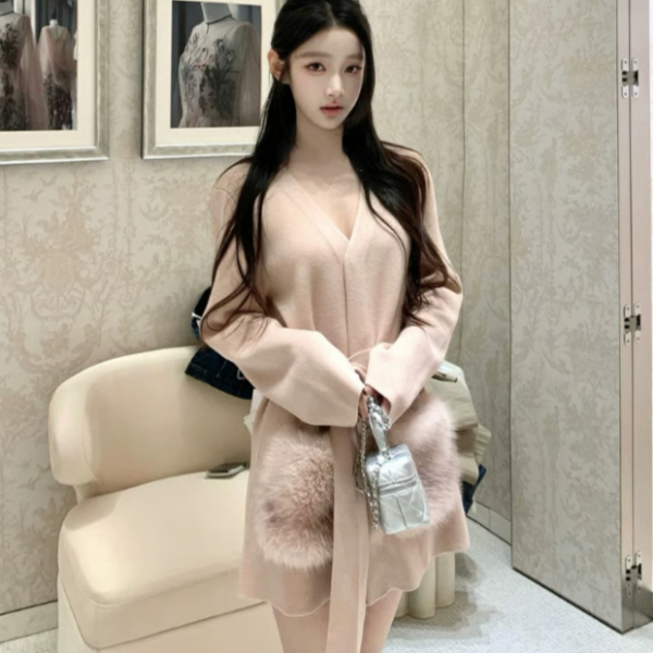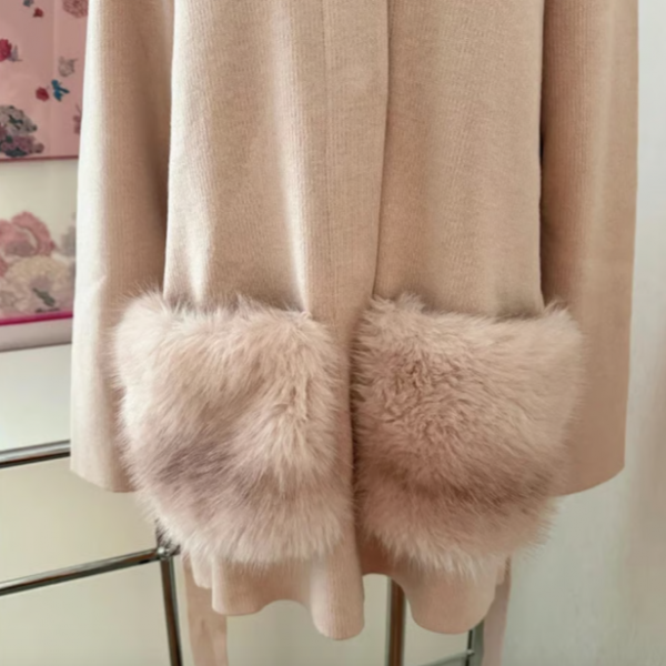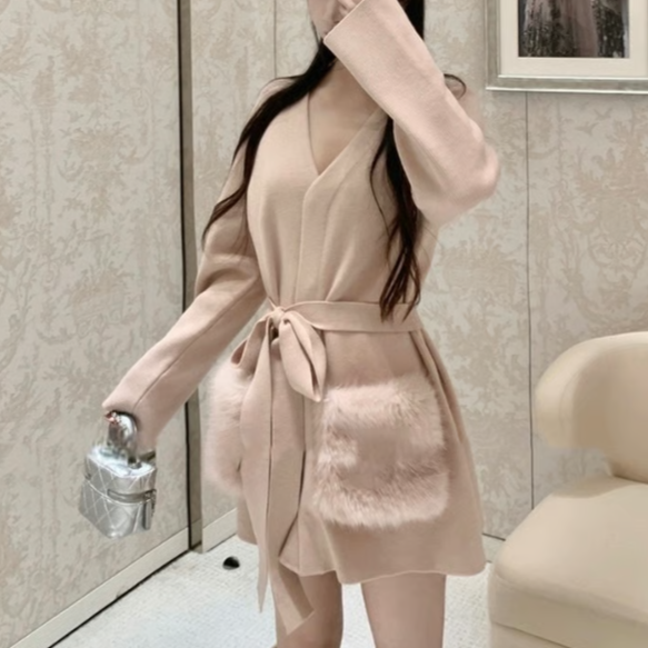 2色展開 フェイクファーポケット ニットガウン ニットコート ニットカーディガン ロングカーディガン ガウンカーディガンが入荷しました。