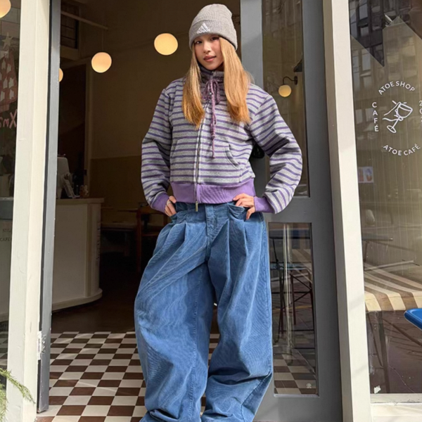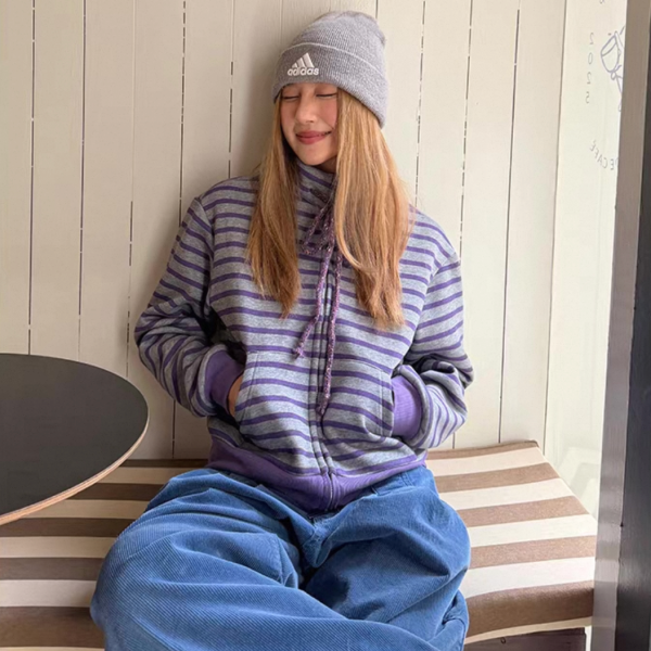 CCYE パープル ダブルジッパー ジップアップ ファスナー ストライプ ボーダー ボトルネック ジャケット スタンドカラー ワンホンが入荷しました。