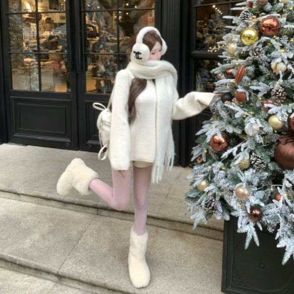 アイボリー フェイクファーブーツ モンスターブーツ ウール調 スノーブーツが入荷しました。