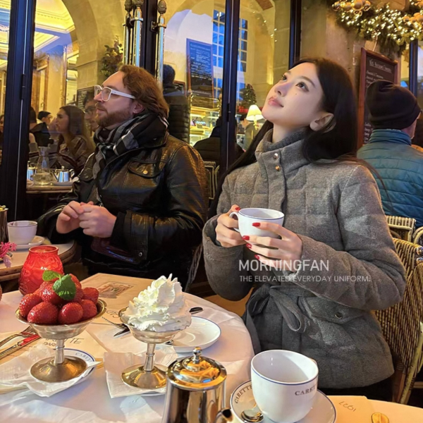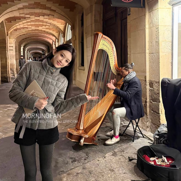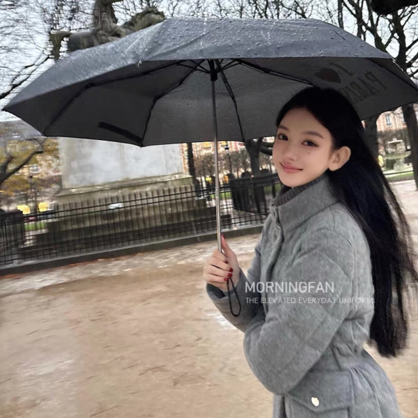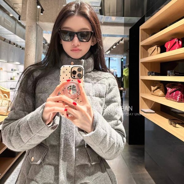 グレー ウエストリボン Aライン スタンドカラー ウール調 キルティングコート キルティングダウンジャケットが入荷しました。