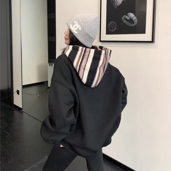 Youlaile studio RICE CAKE OISIS 3色展開 ストライプ ボーダー ボア切替 レイヤード 重ね着風 スウェット トレーナー プルオーバー パーカー フーディー ワンホンが入荷しました。