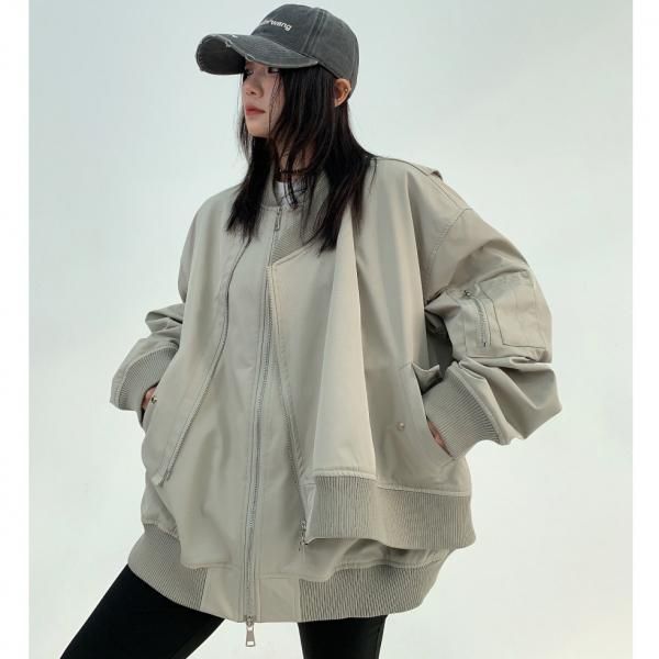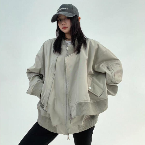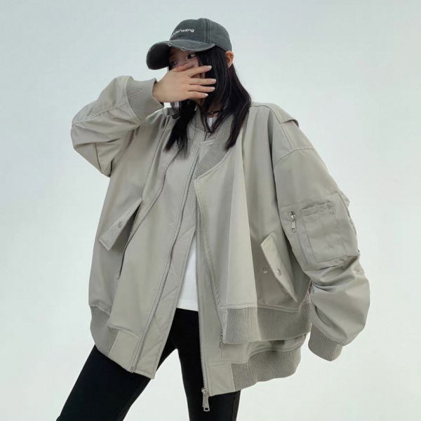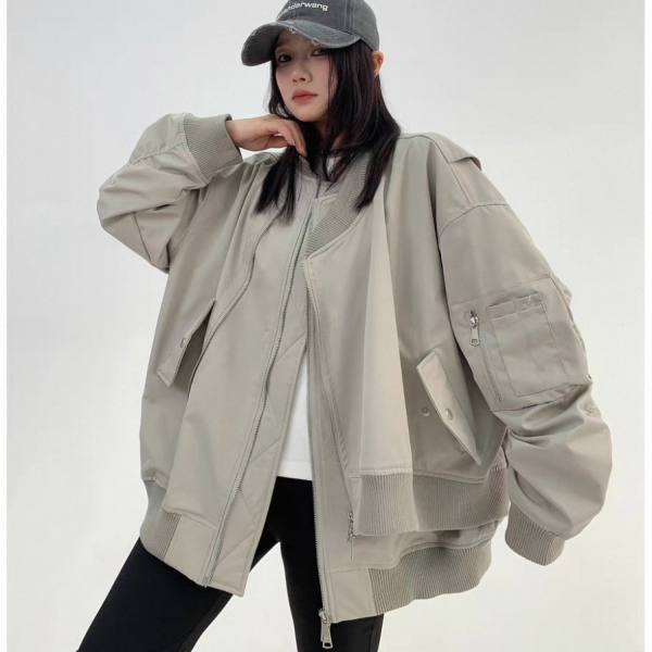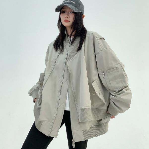 Youlaile studio RICE CAKE OISIS セージグリーン レイヤード 重ね着風 ドッキング風デザイン ジッパー ジップアップ ファスナー MA-1 ブルゾン ボンバージャケット オーバーサイズ ワンホンが入荷しました。