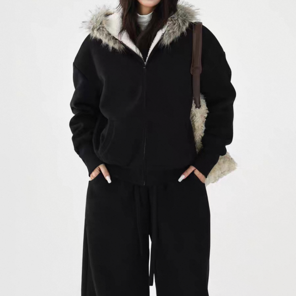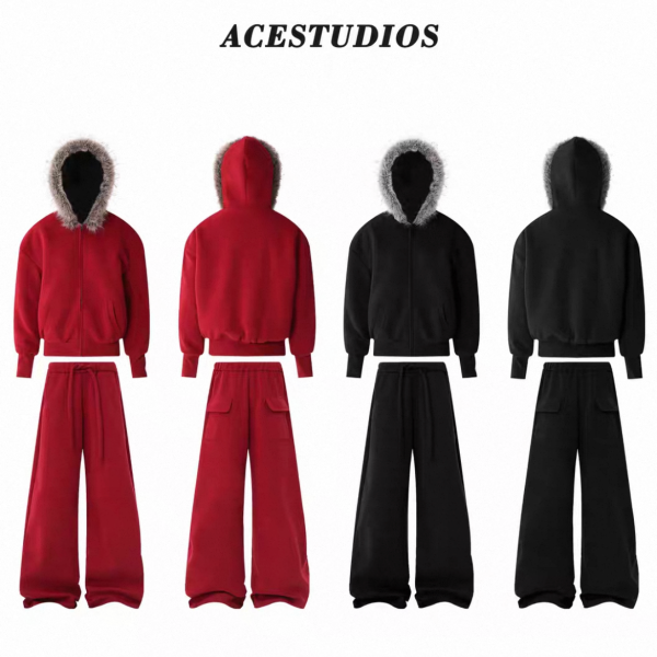 AceStudios 2色展開 無地 シンプル フェイクファーパーカー ファーフーディー ボアライナー ジッパー ジップアップ ファスナー スウェットジャケット スウェットパンツ ロングパンツ セットアップ ワンホンが入荷しました。