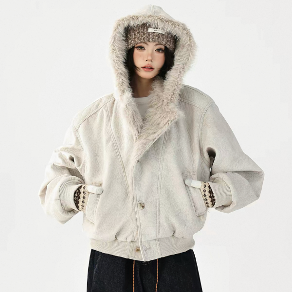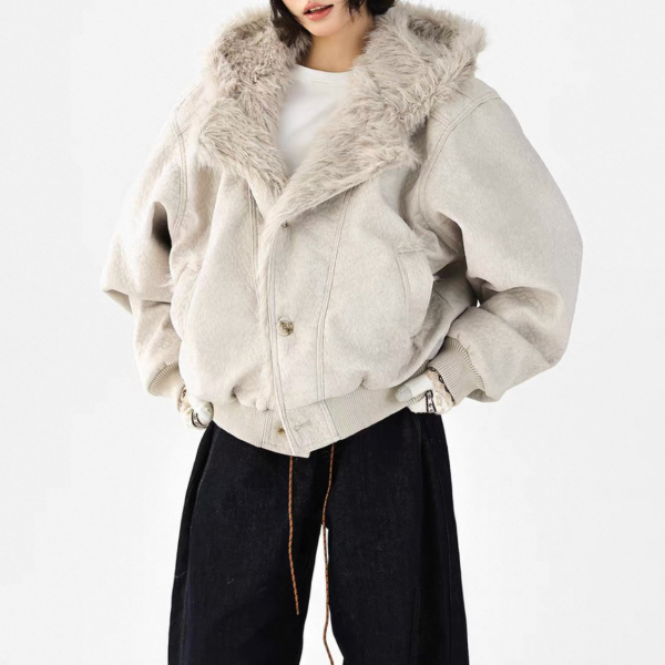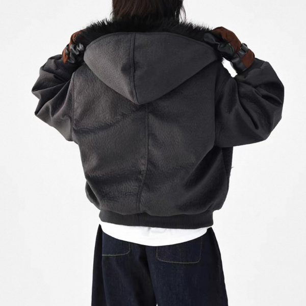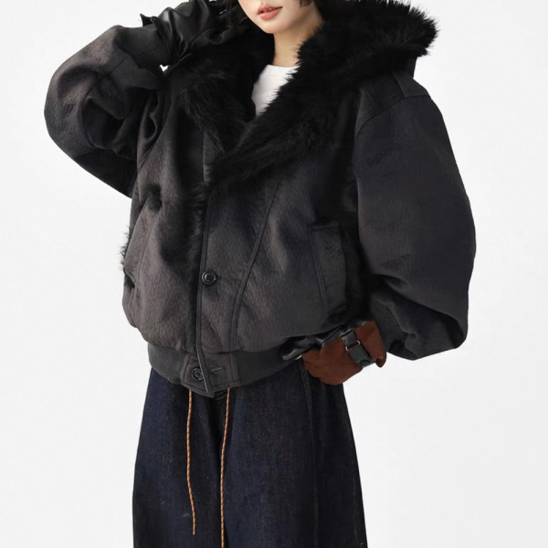 AceStudios 2色展開 フェイクファーパーカー ファーフーディー ファーライナー フロントボタン フェイクレザー 合皮 ブルゾン ボンバージャケット ワンホンが入荷しました。