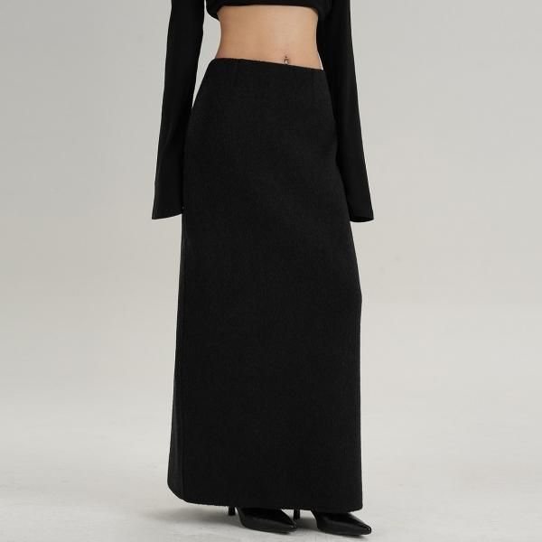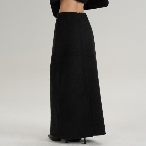 SRYS ブラック 無地 シンプル ウールスカート ロングスカート マキシスカート タイトスカート ワンホンが入荷しました。