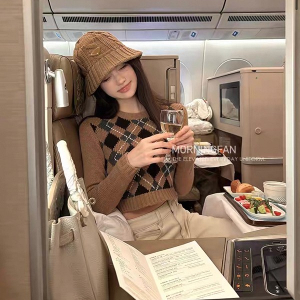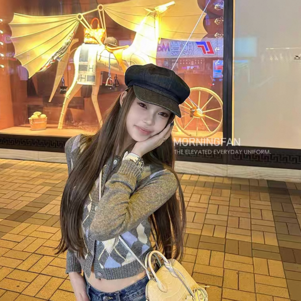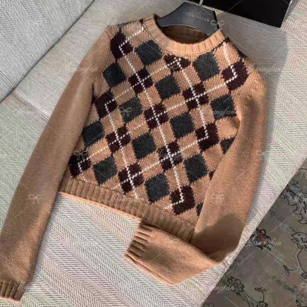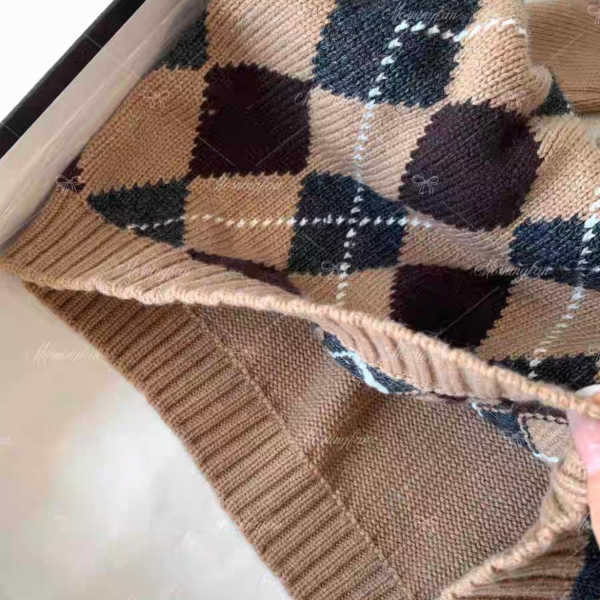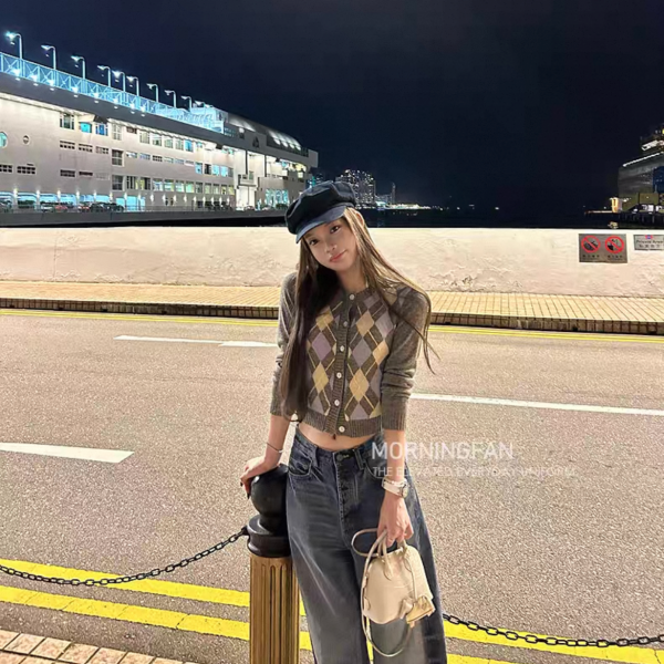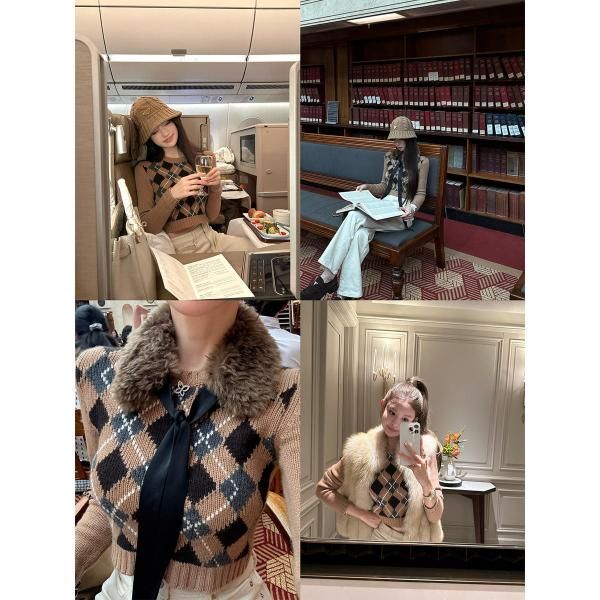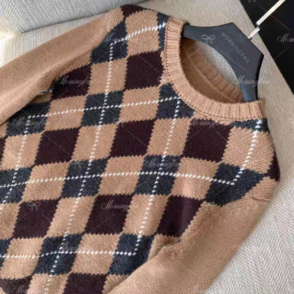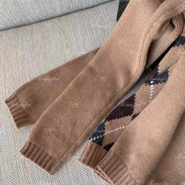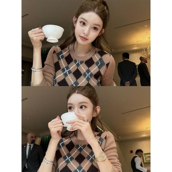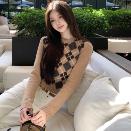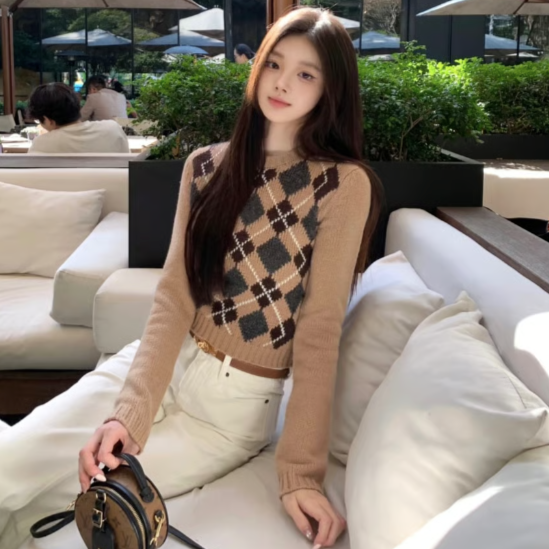 ベージュ アーガイル柄 ダイヤ柄 クルーネック 長袖 ニット セーター クロップドニット トップスが入荷しました。