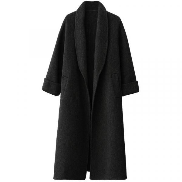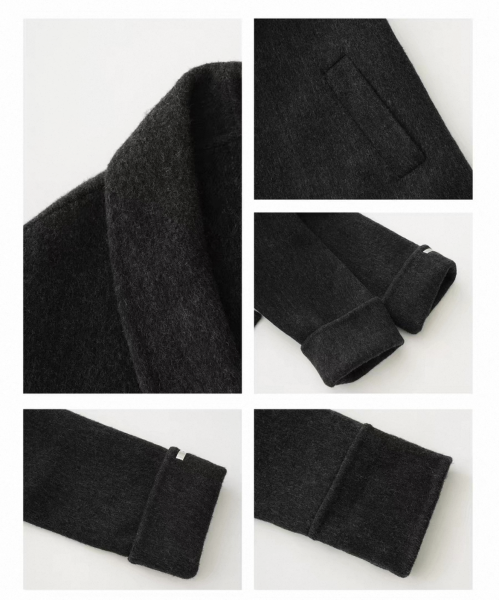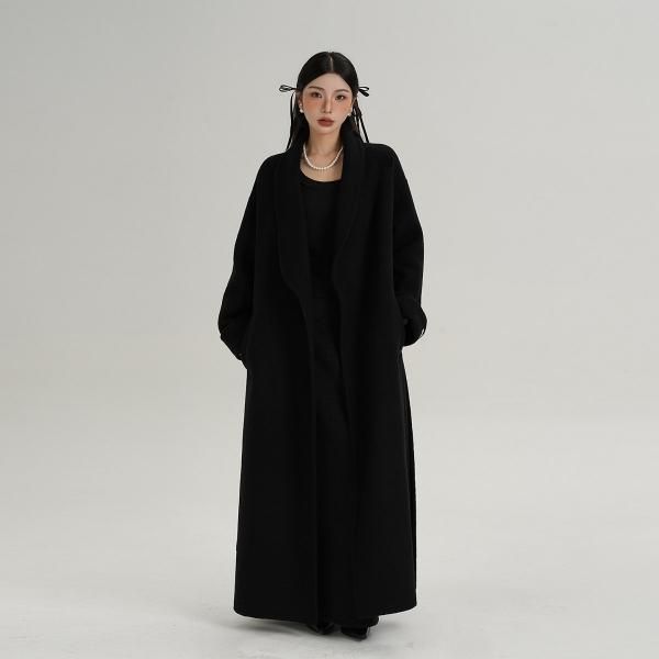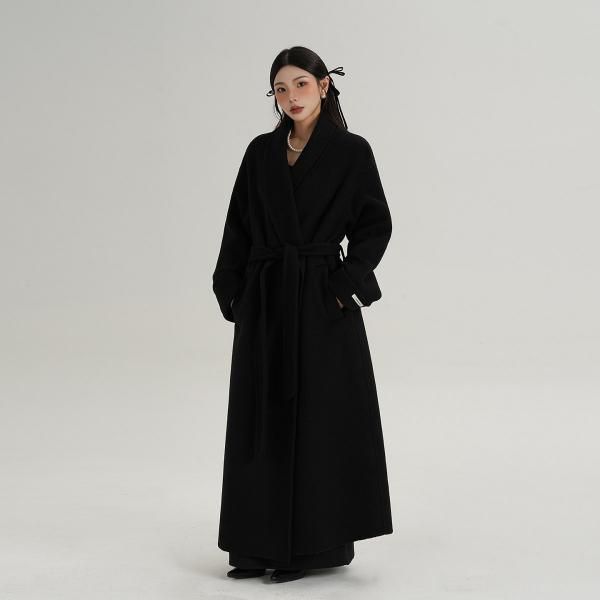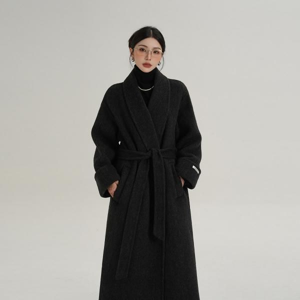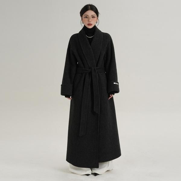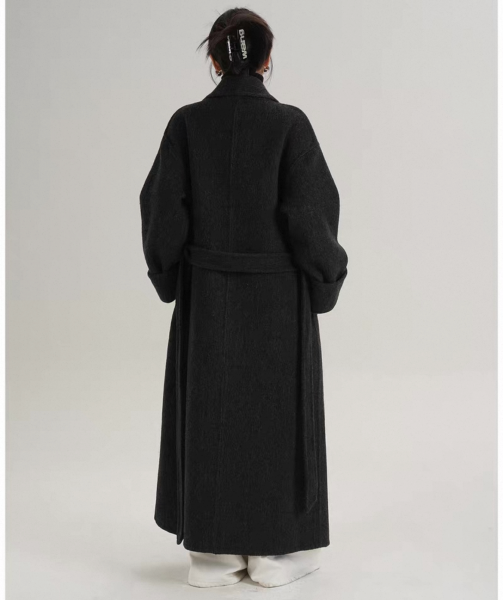 SRYS 2色展開 無地 シンプル ウール混 ショールカラー ウエストベルト ロングコート ガウンコート ワンホン が入荷しました。