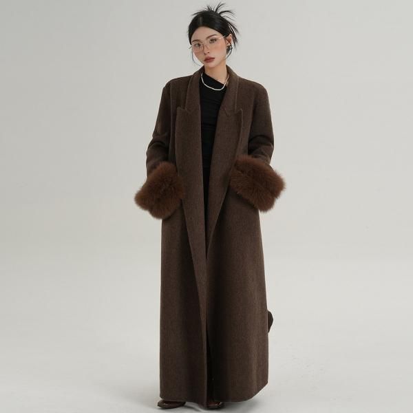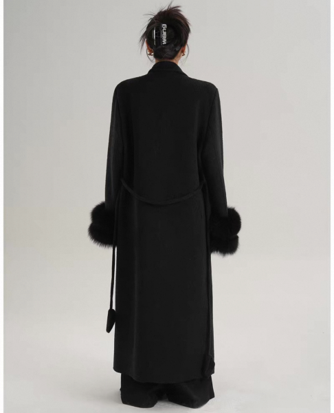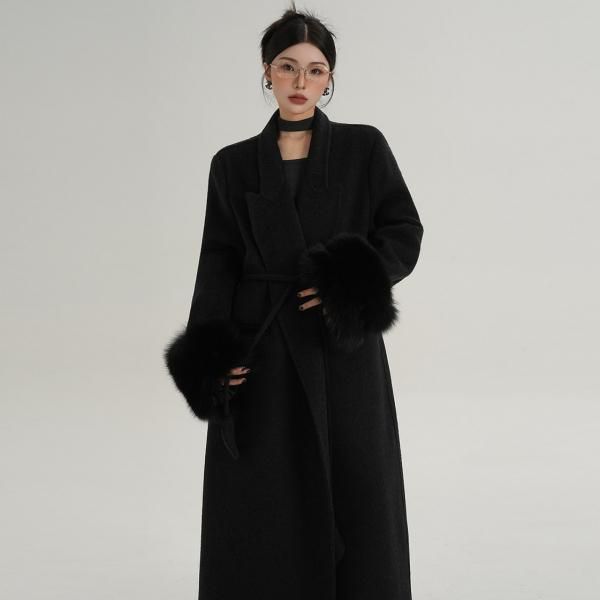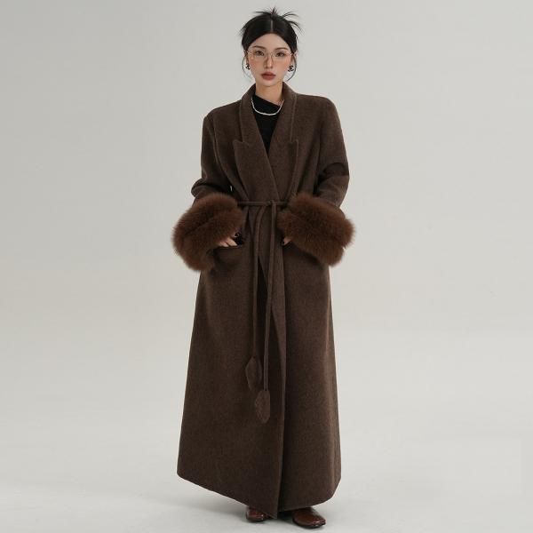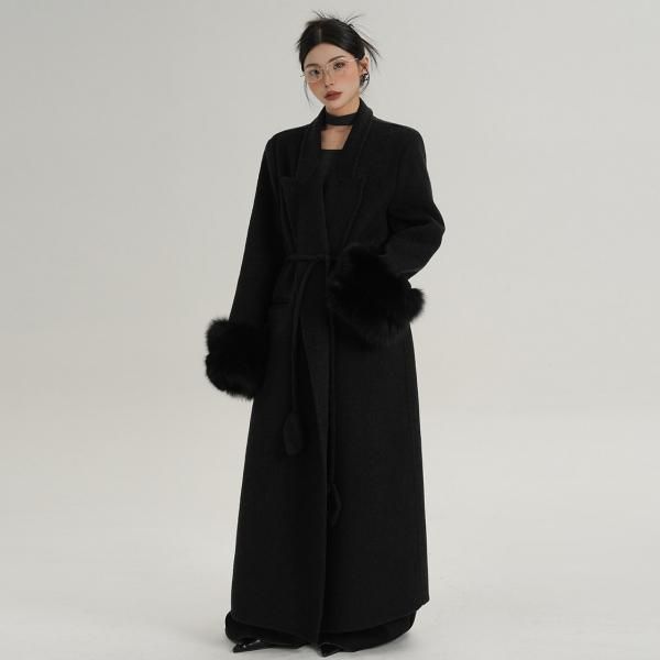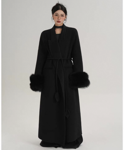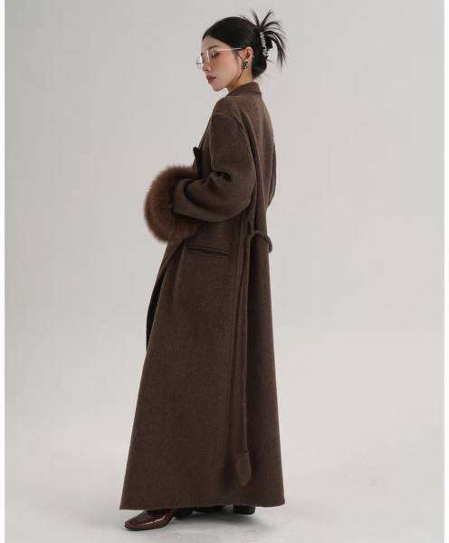 SRYS 2色展開 ウエストベルト フォックスファースリーブ ウールコート ロングコート マキシコート ガウンコート ワンホンが入荷しました。