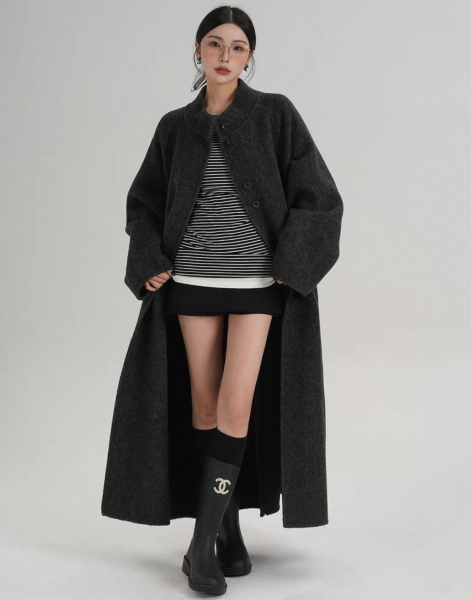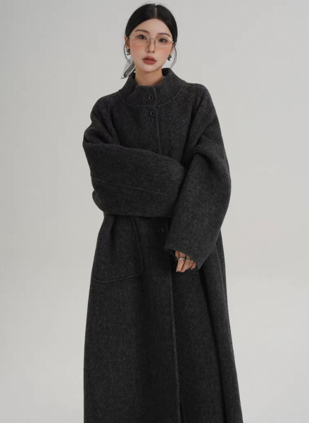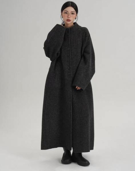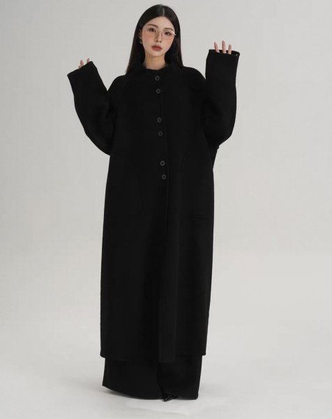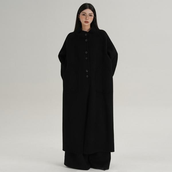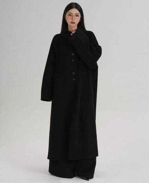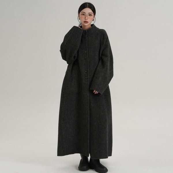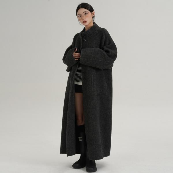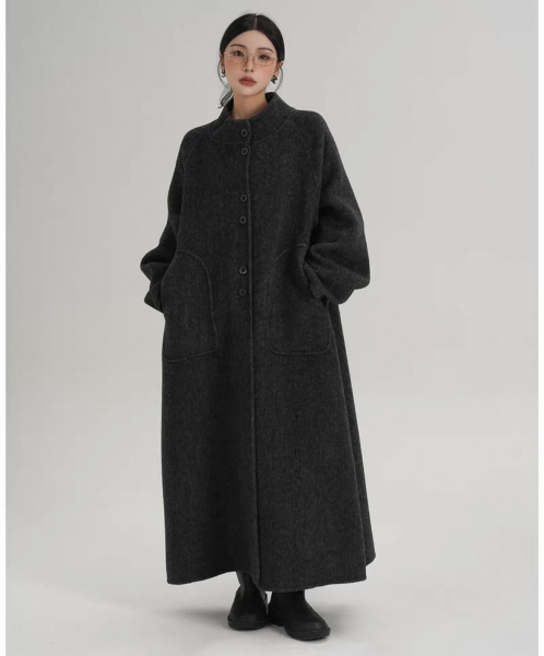 【大特価】SRYS 2色展開 フロントボタン スタンドカラー ハイネック シングルボタン ウールコート ロングコート マキシコート ワンホン