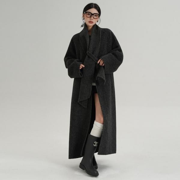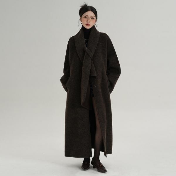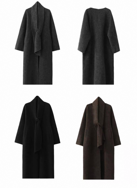 SRYS 2色展開 スカーフ付き 2way マフラー ノーカラー Vネック ウールコート ロングコート マキシコート ワンホンが入荷しました。