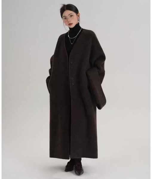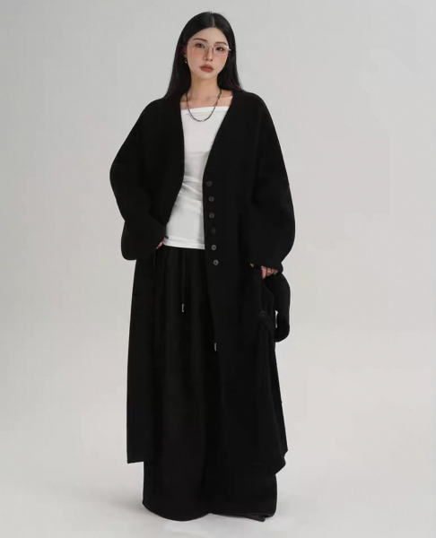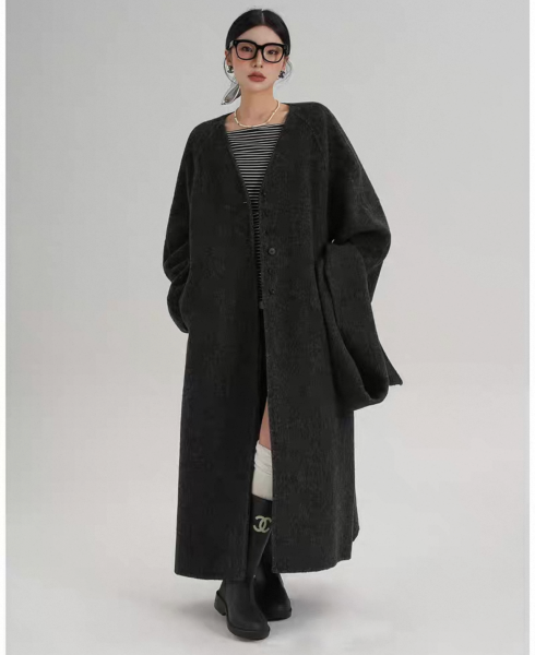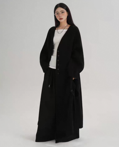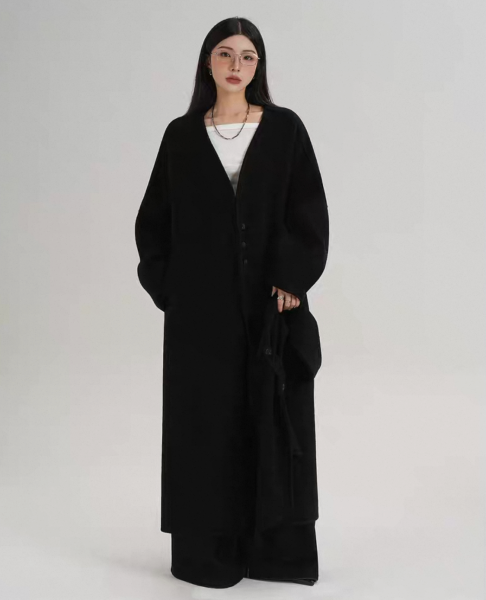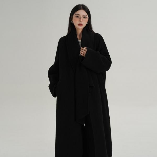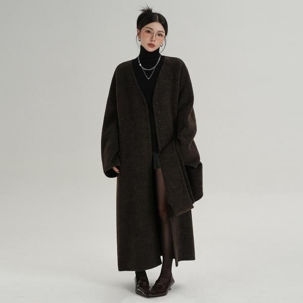 【大特価】SRYS 3色展開 スカーフ付き 2way マフラー ノーカラー Vネック ウールコート ロングコート マキシコート ワンホン