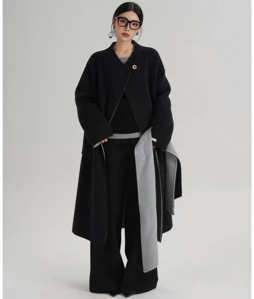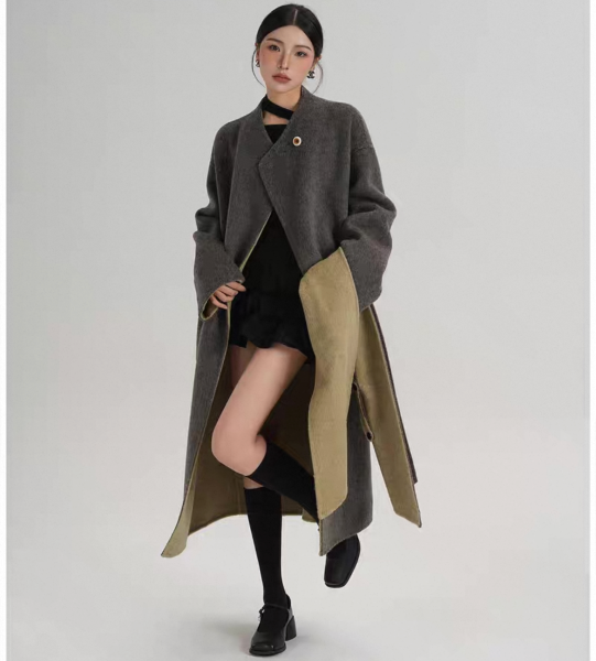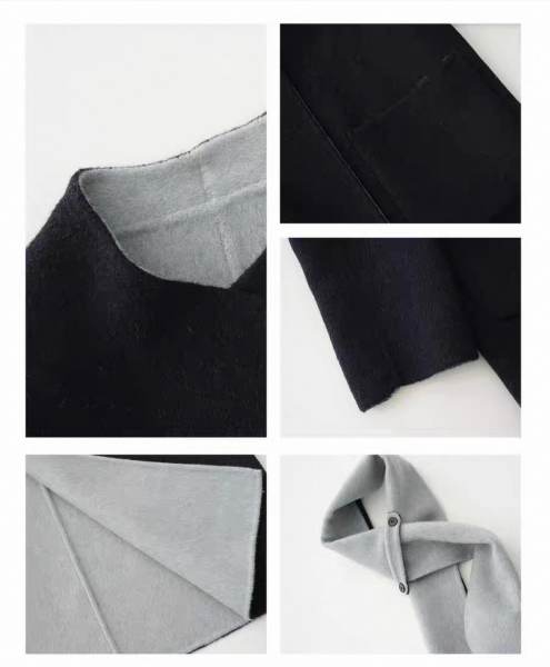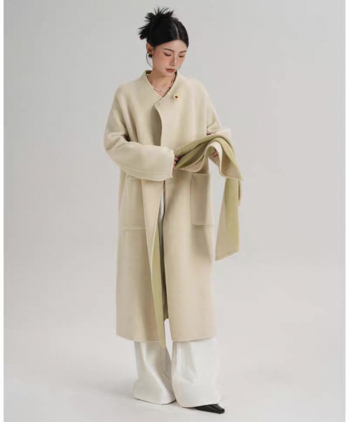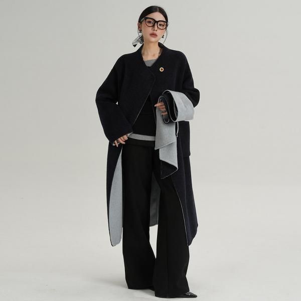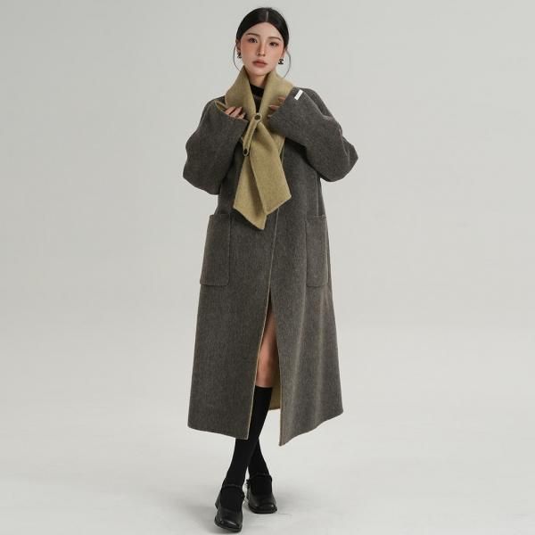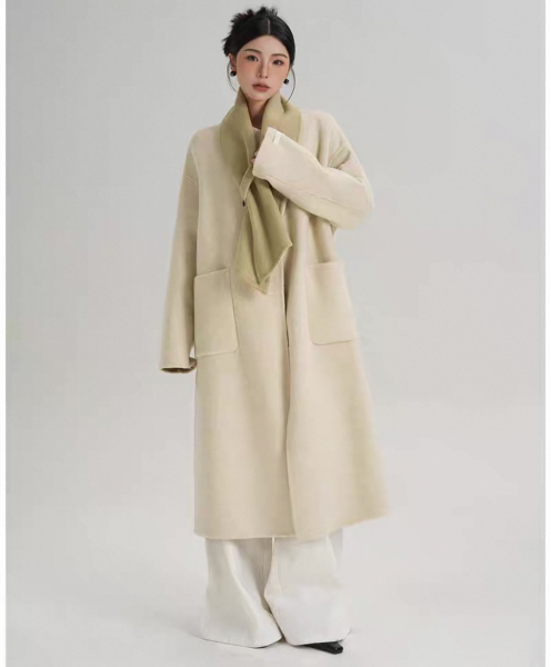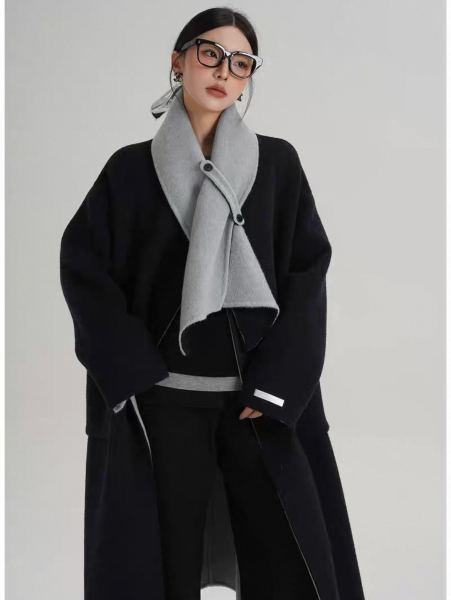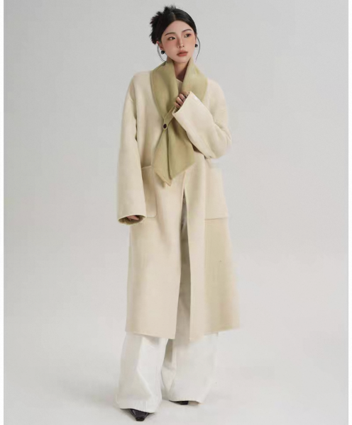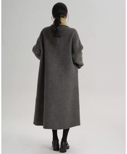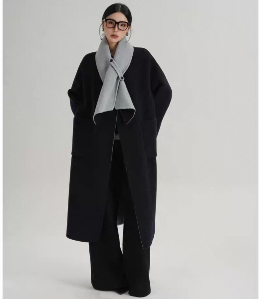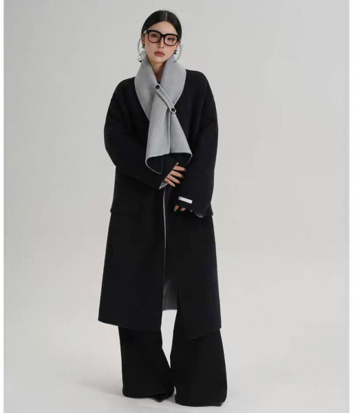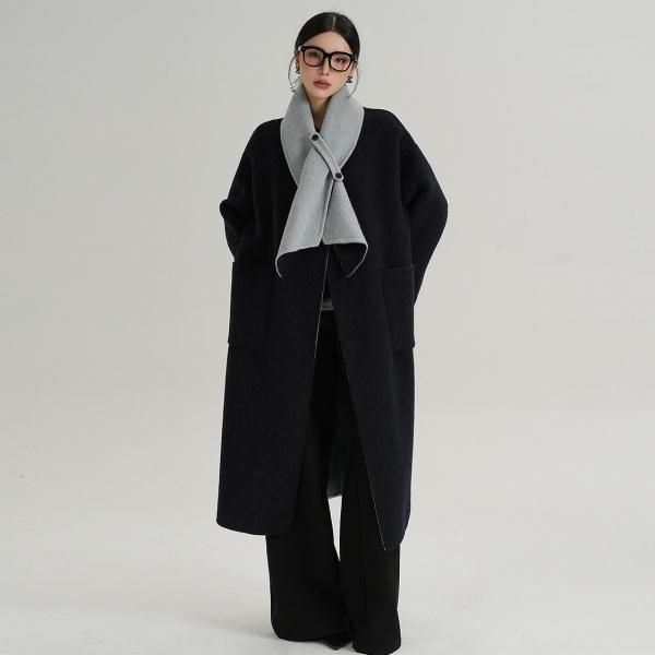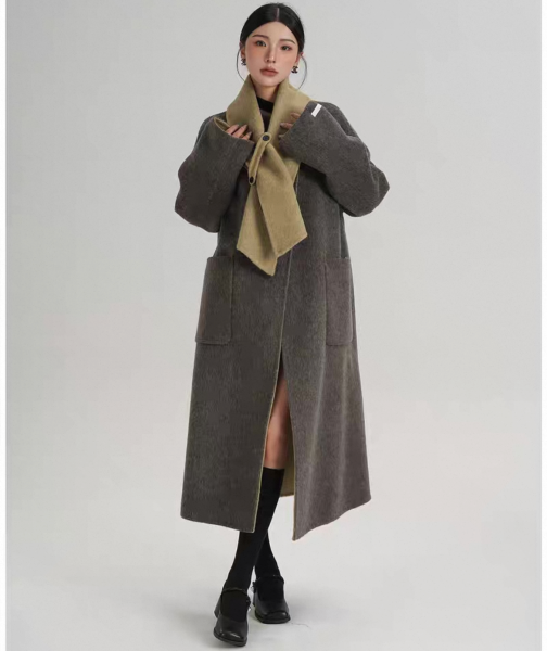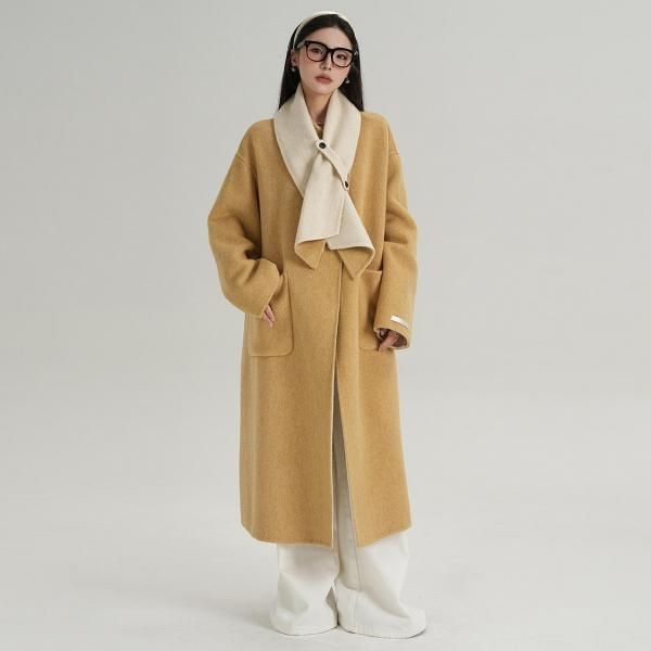 SRYS 4色展開 マフラー付き ノーカラーコート バイカラー ウールコート ロングコート マキシコート ワンホンが入荷しました。