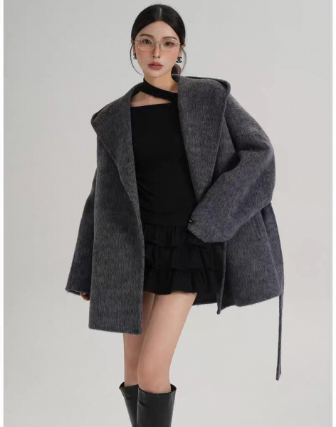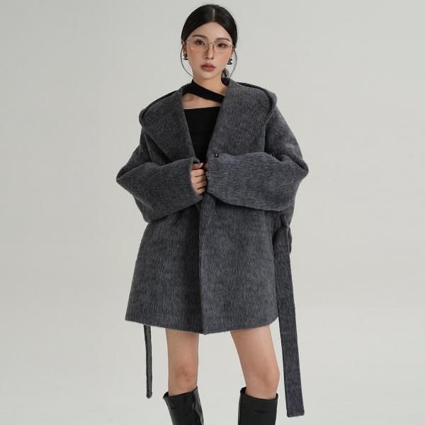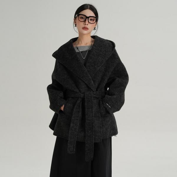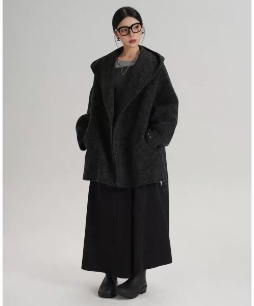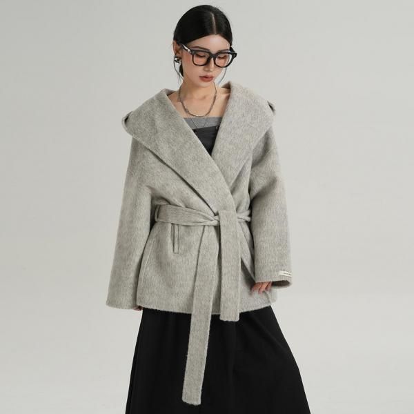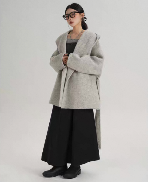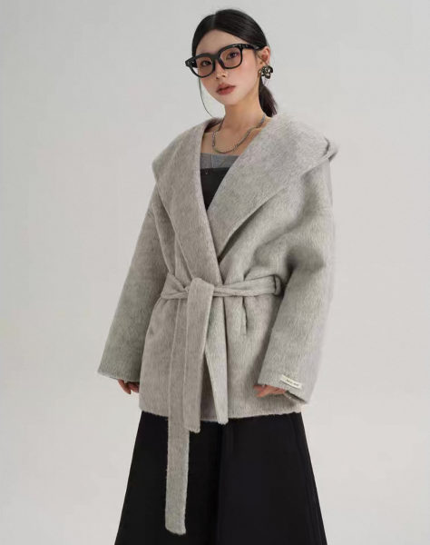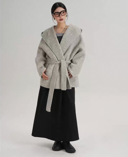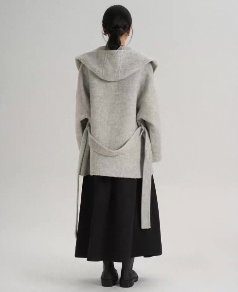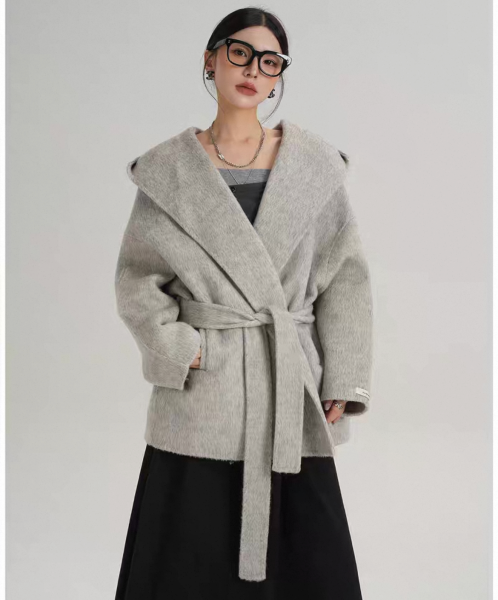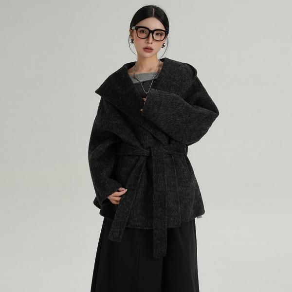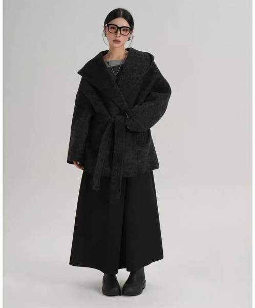 SRYS ショールカラー ウエストベルト ミドル丈 ウールコート ガウンジャケット ローブジャケット ガウンコート ワンホンが入荷しました。