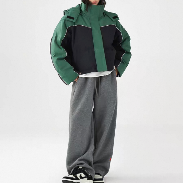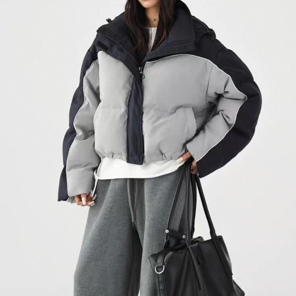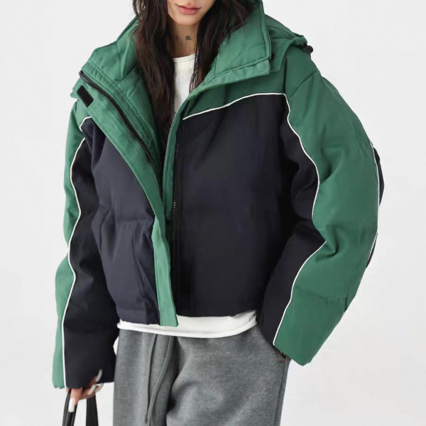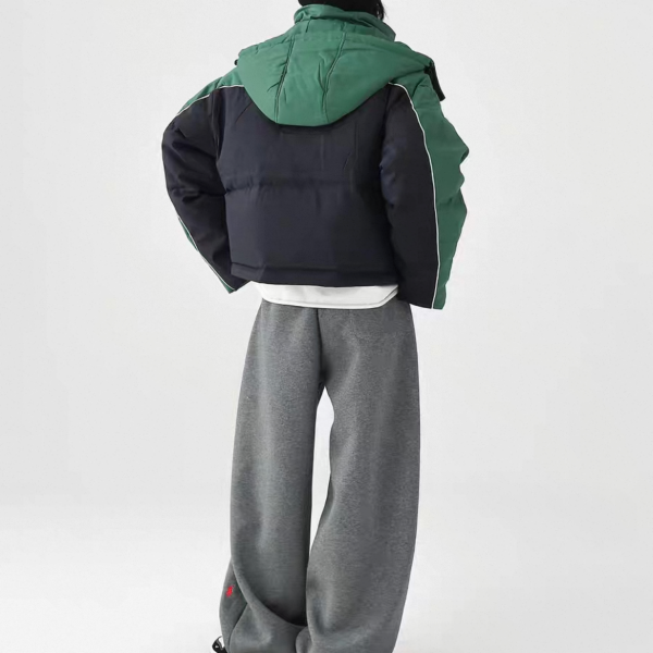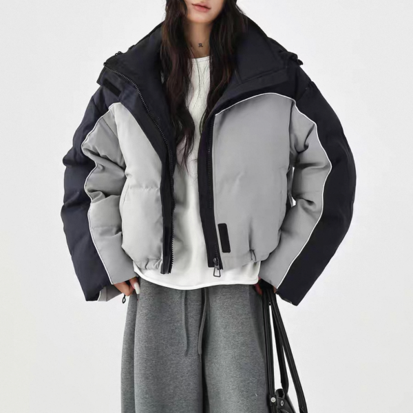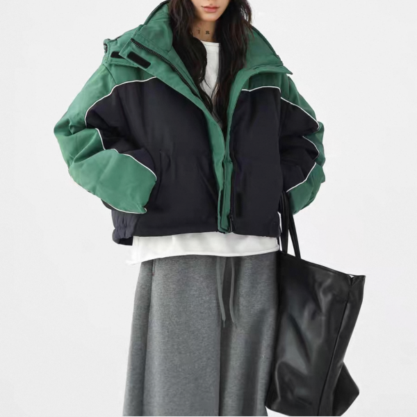 AceStudios 2色展開 カラーブロック コントラストカラー ショート丈 ツートーン バイカラー パーカー フーディー ダウンジャケット パファージャケット ワンホンが入荷しました。