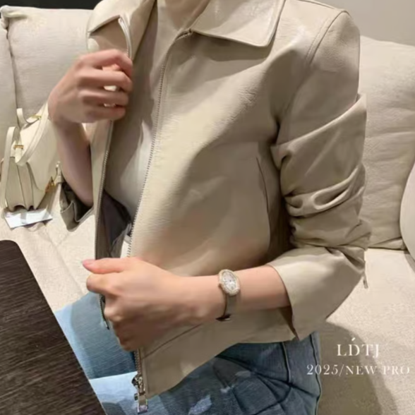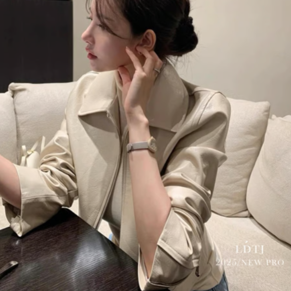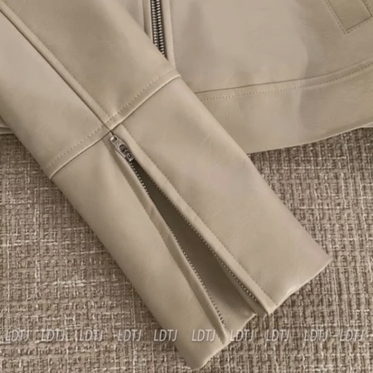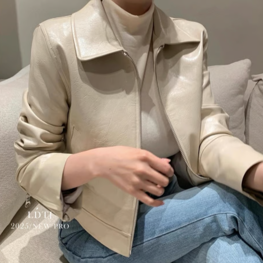 ホワイト フェイクレザー PU 襟付き ジッパー ジップアップ ファスナー レザージャケット 韓国が入荷しました。
