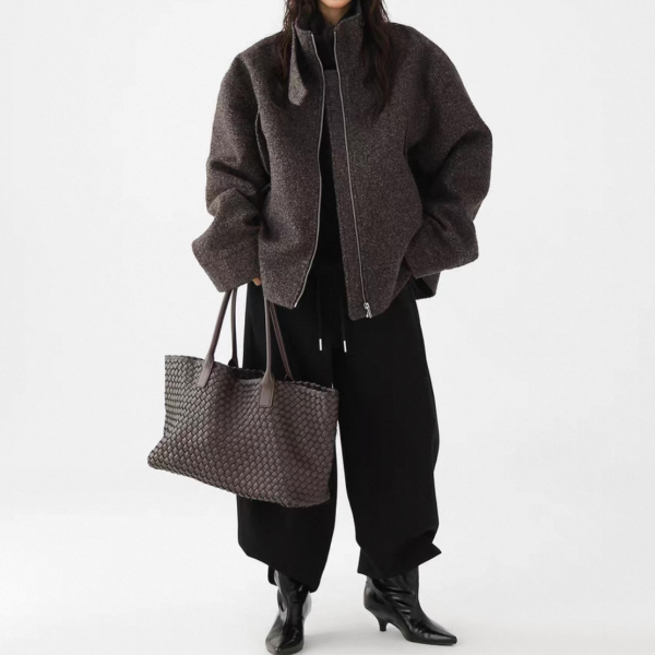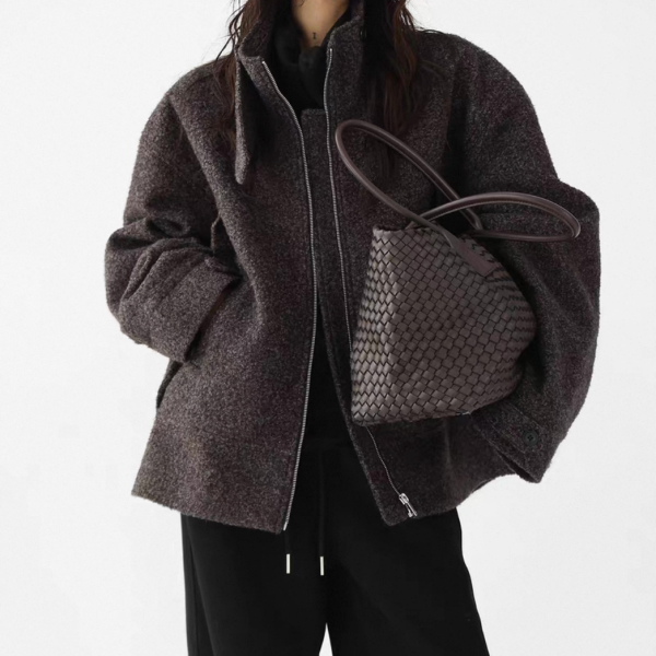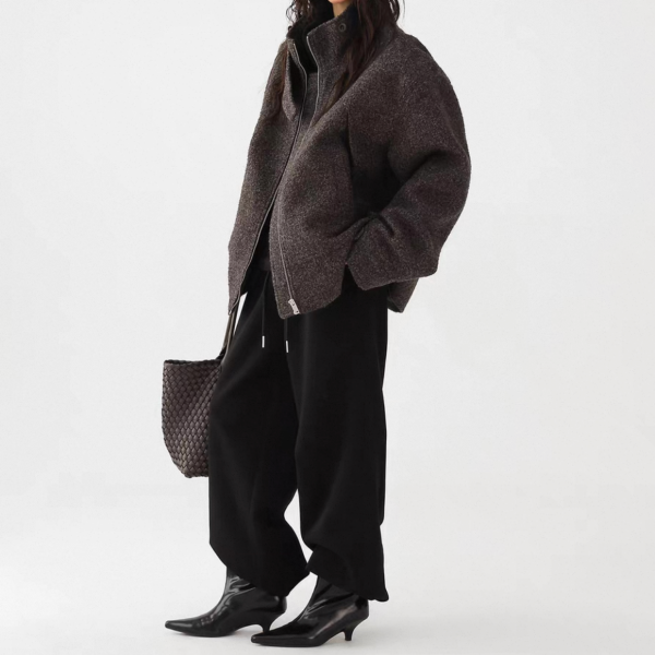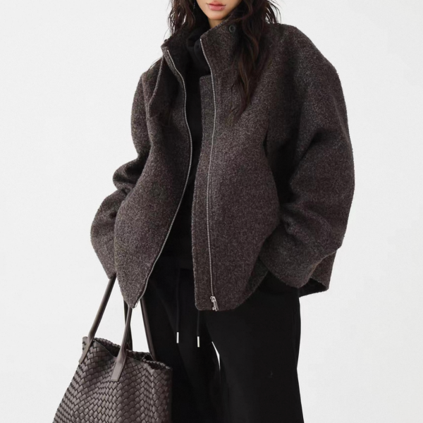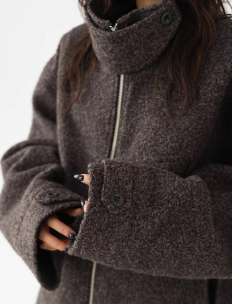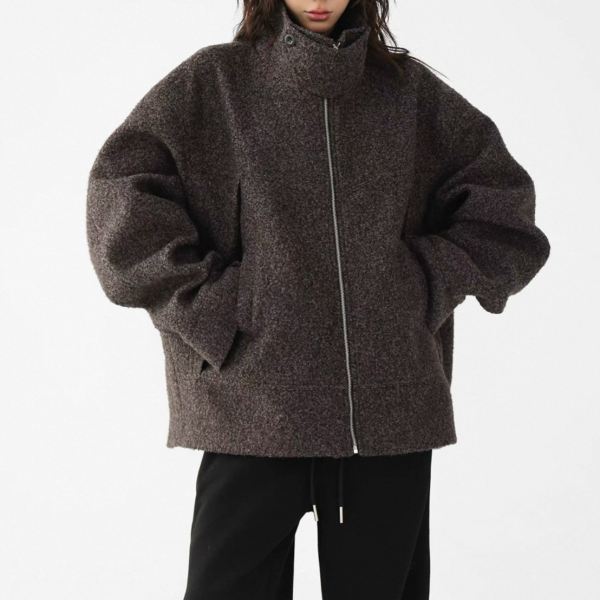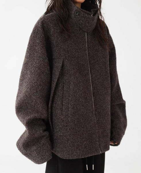 AceStudios グレー スタンドカラー ハイネック ジッパー ジップアップ ファスナー ウール調 オーバーサイズ ブルゾン ジャケット ワンホンが入荷しました。